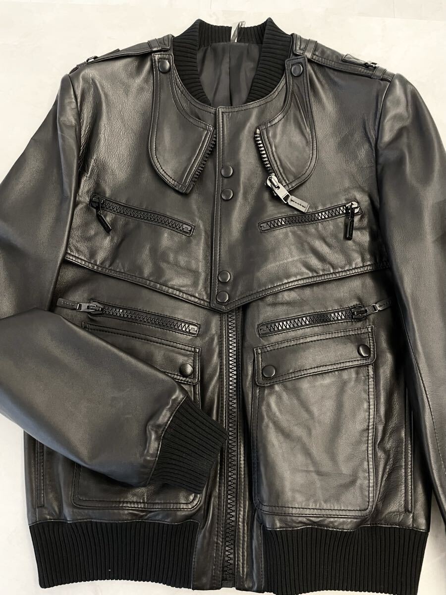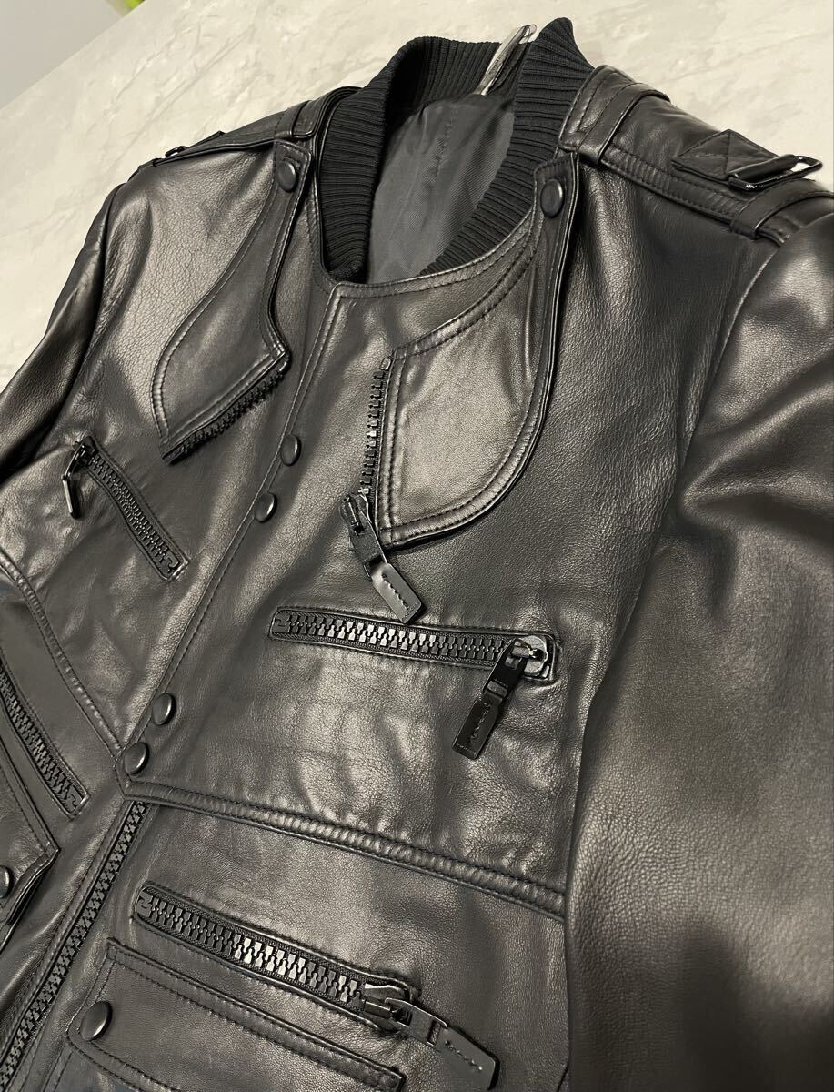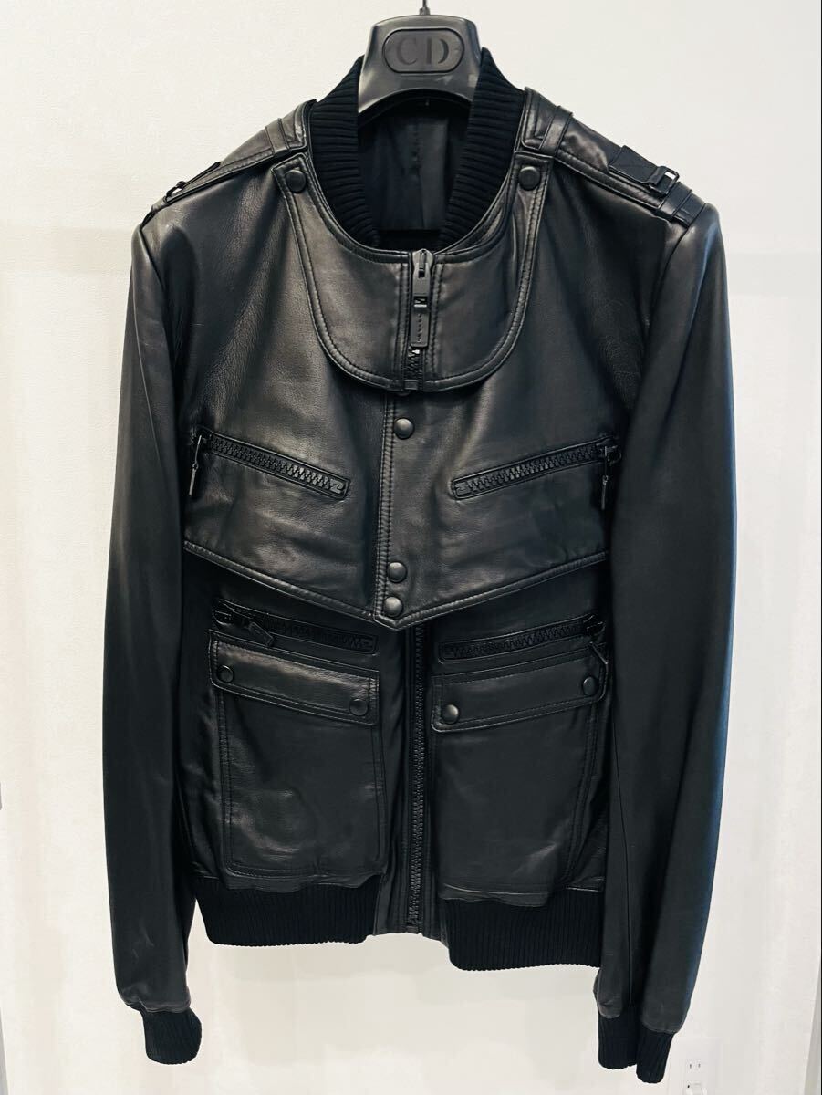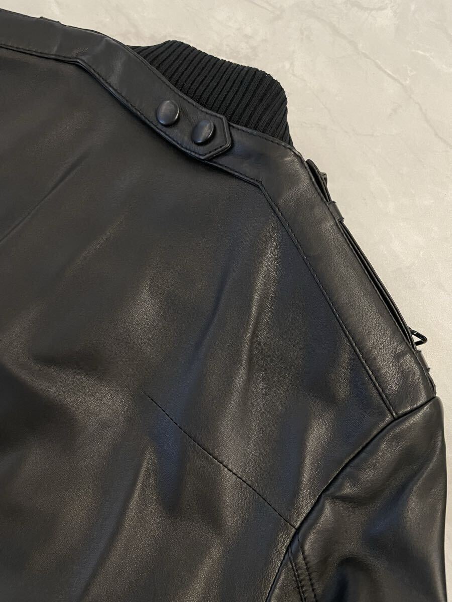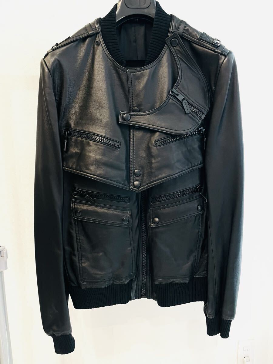 07s/s エディ期ディオールオム リブシングルライダースジャケット サイズ50 革ジャン7E3540120002 Dior HOMME ブラック
