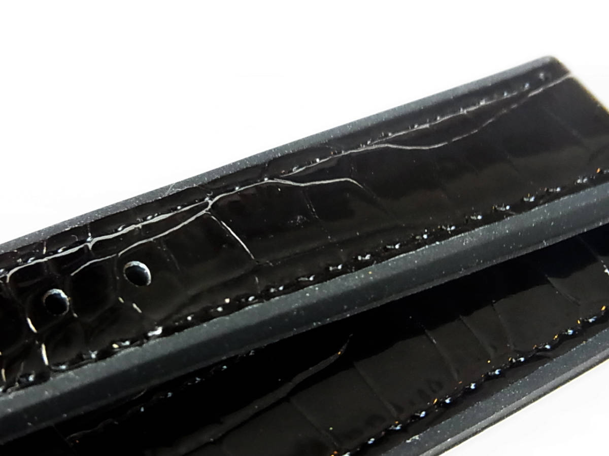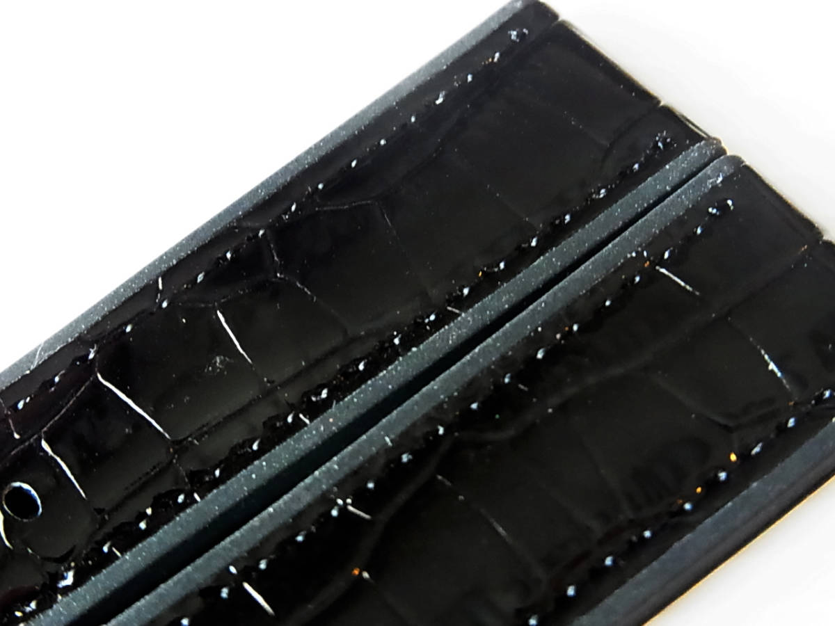 シリコンラバーにクロコダイル型押素材を埋め込んだストラップです。 ウブロのベルトにも同じような手法が使われており使い勝手がいいベルトです。 上部素材は革ということで手に入れておりますがPUレザーの可能性がある為、PUレザーの認識でお願いいたします。 エナメル加工で光沢があり非常に高級感あります。 下側はシリコンラバーですので汗からの傷みを防げます。 シリコンラバーだと味気ないし高級感もあまり感じませんがこちらは シリコンラバーに高級感を持たせたお品です。 (サイズ) ラグ幅:20mm バックル取付幅:18mm 剣先側長さ:約12cm バックル側長さ:約8cm (色合について) 撮影の未熟さやお使いのモニター環境などで実物と色合いに違いがでると思います。 ご了承下さい。 (お願い) 新品未使用ではございますが保管擦れ等はご了承下さい。 |