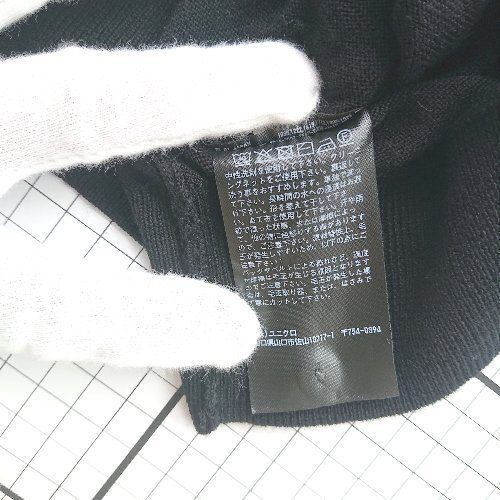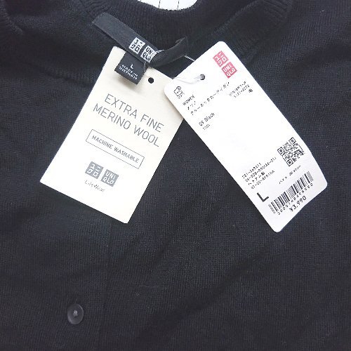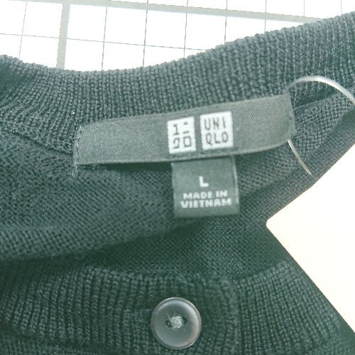 ◇ ⊂ 美品 UNIQLO ユニクロ シンプル系 長袖 メリノクルーネックカーディガン サイズL ブラック系 レディース E