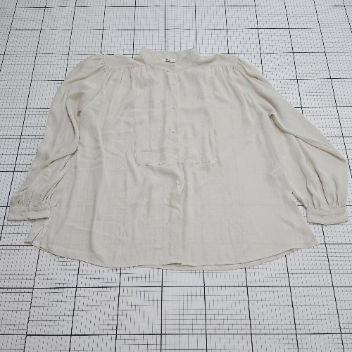 ◇ ⊂ UNIQLO ユニクロ 大人カジュアル 長袖 マオカラーシャツブラウス サイズM ベージュ系 レディース E