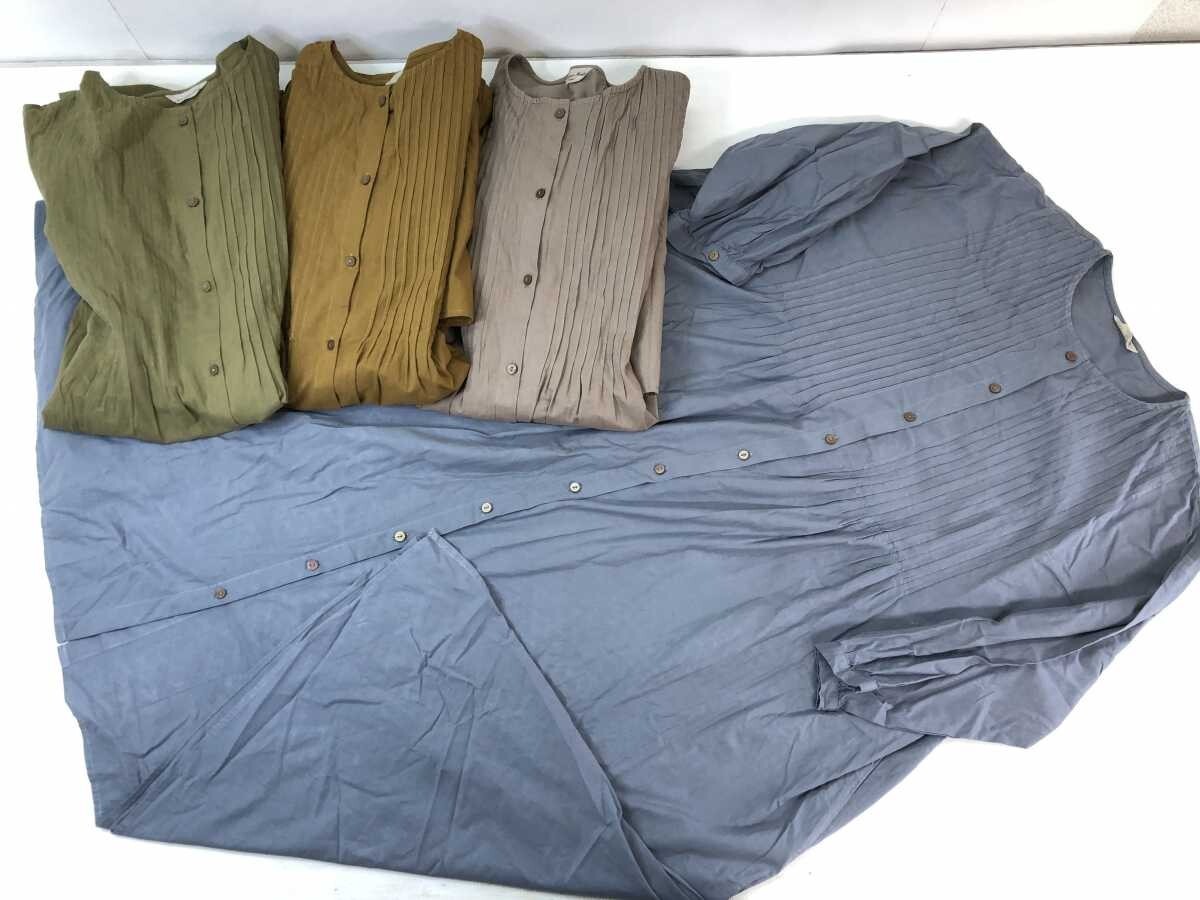 サマンサ モスモス Samansa Mos2 SM2 胸元ピンタック ノーカラー シャツワンピース 4点セット レディース F 青/ベージュ/キャメル/カーキです。