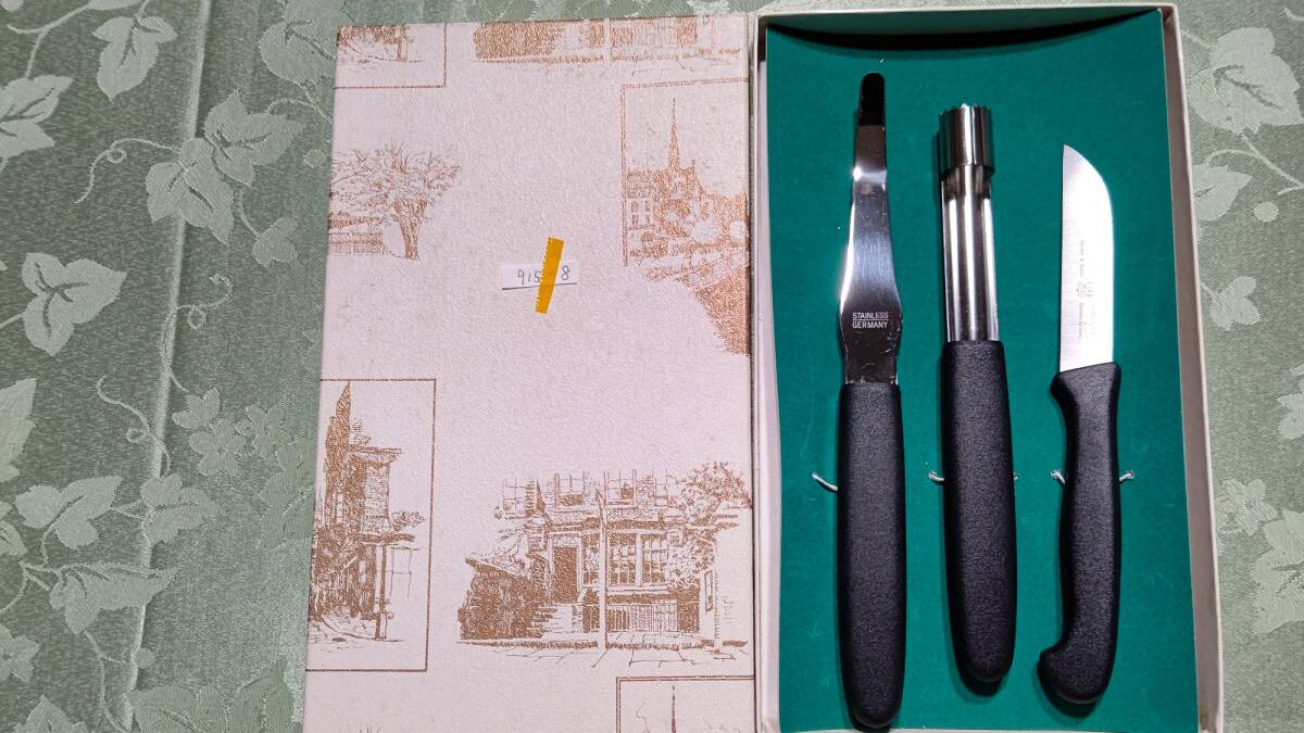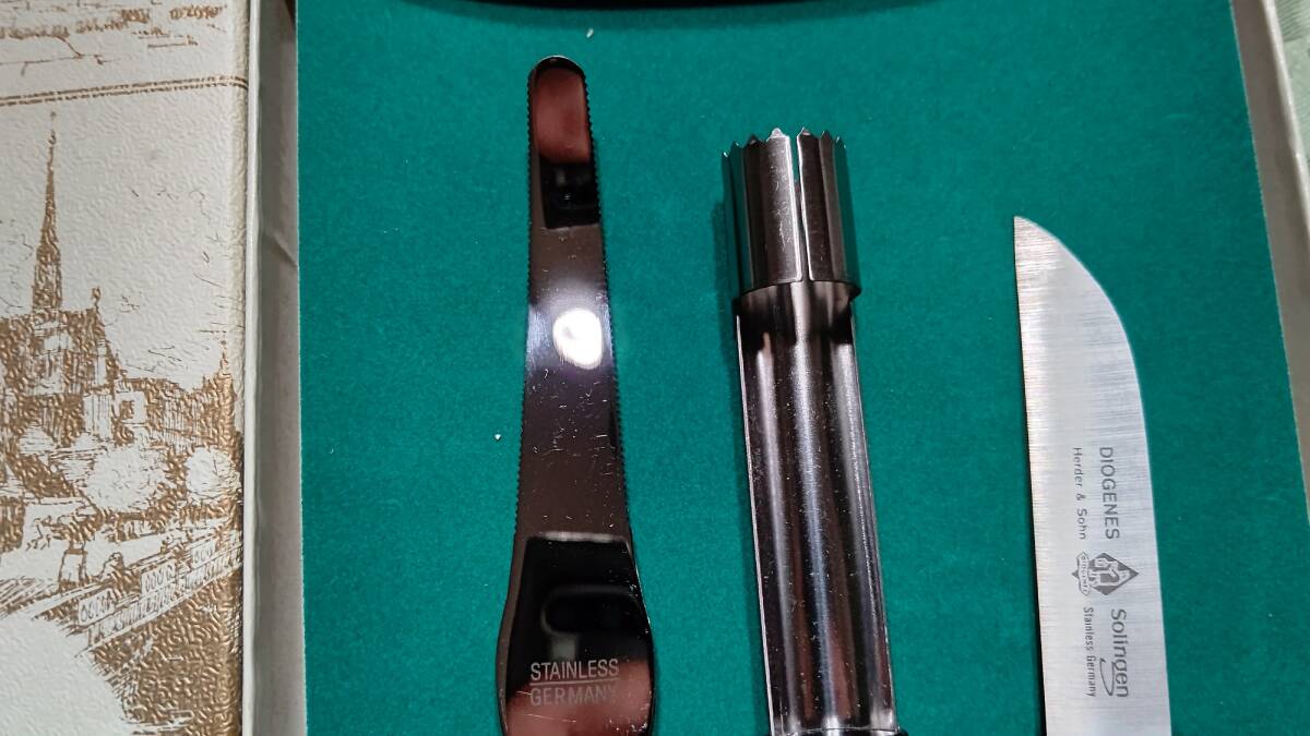 915-8 ドイツ製 ゾーリンゲン Herder & Sohn社製 DIOGENES(ディオゲネス)ステンレス製 フルーツ用3点セット(ナイフ、芯抜き、皮剥き)箱入り