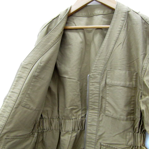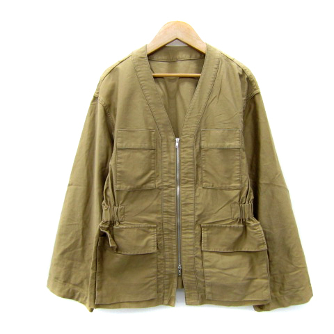 マカフィー MACPHEE トゥモローランド ミリタリージャケット ミドル丈 ノーカラー 無地 ダブルジップ 36 S 茶 ブラウン レディース