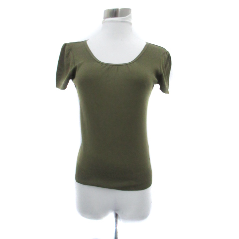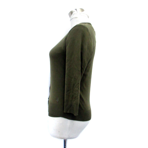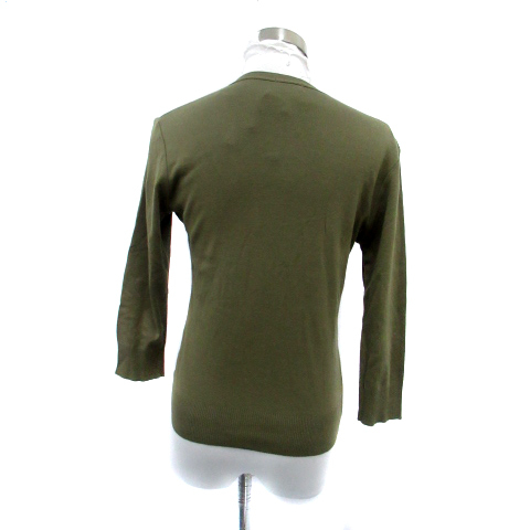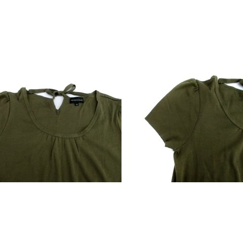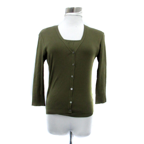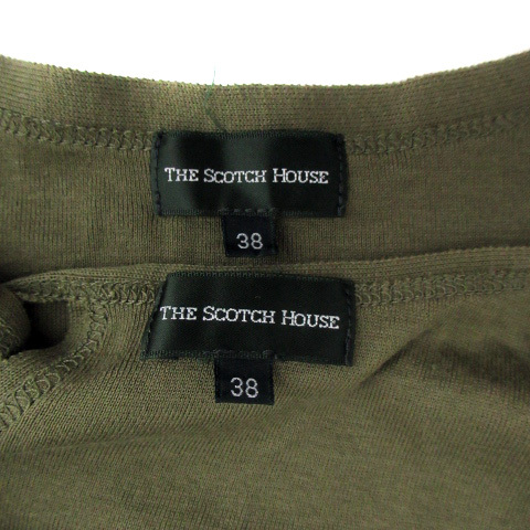 ザ スコッチ ハウス アンサンブルニット カーディガン Vネック ミドル丈 カットソー ラウンドネック 半袖 刺繍 38 M カーキ レディース