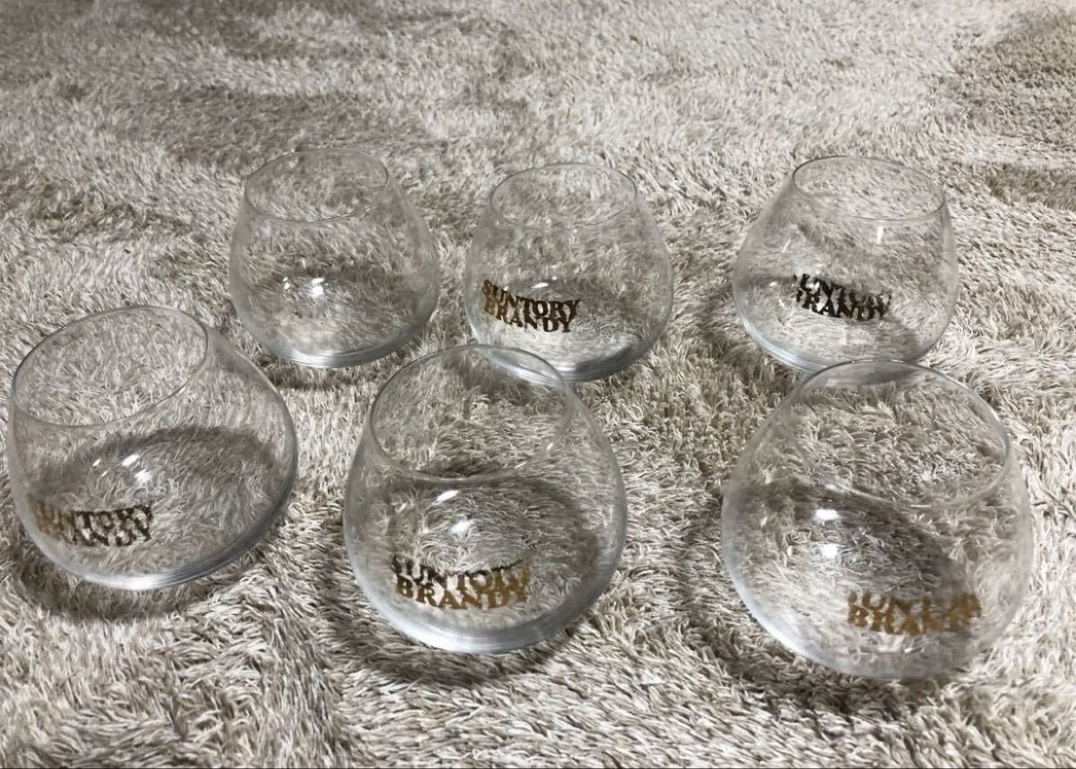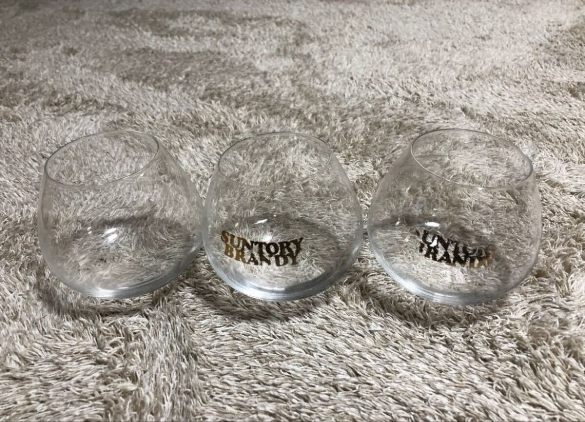 ガラスに印字されている、「SUNTORY BRANDY」の文字が消えかけています。また、全く消えたものもあります。