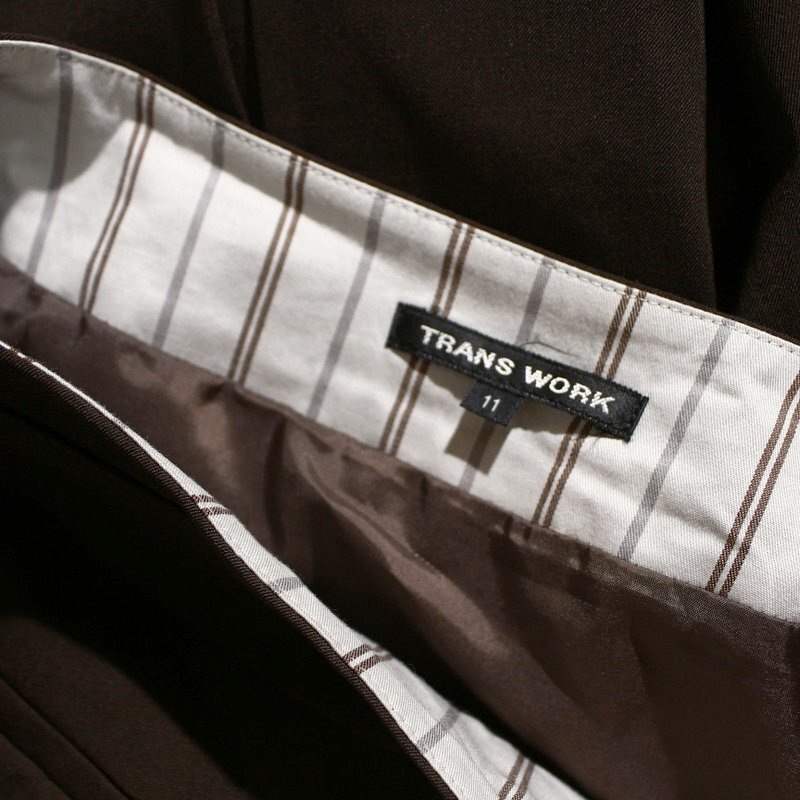 美品 TRANS WORK トランスワーク 株) 三陽商会 合物 膝下丈 ウール混合 毛 Aライン ボックスプリーツ スカート 11号 ブラウン オフィス