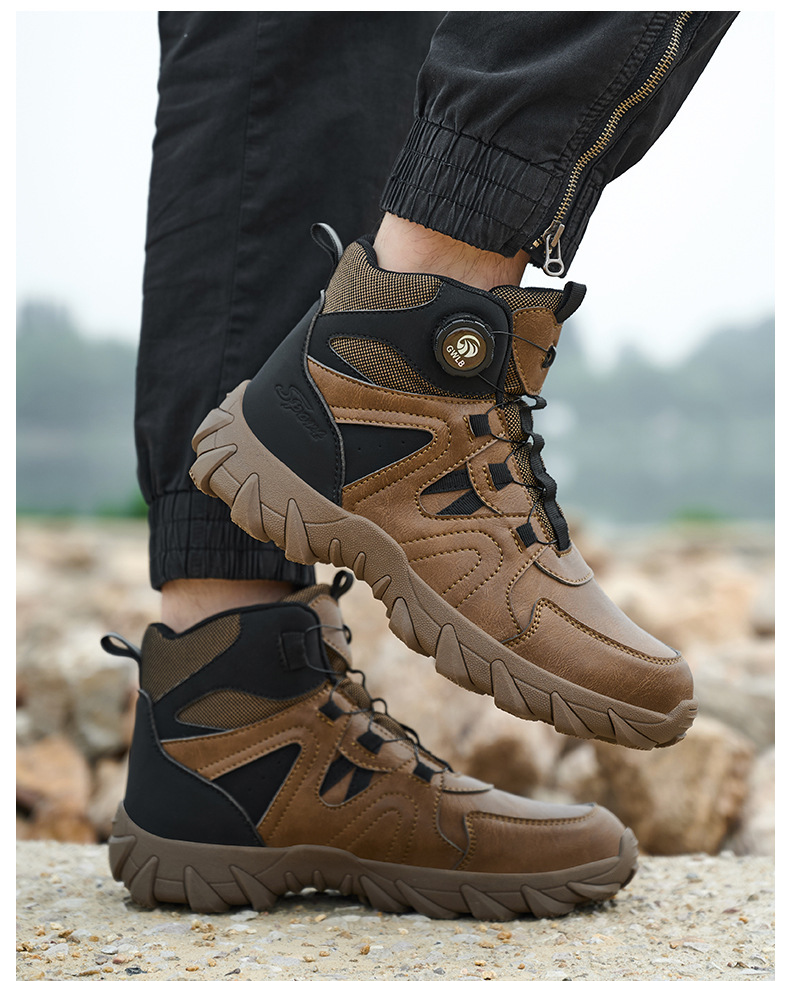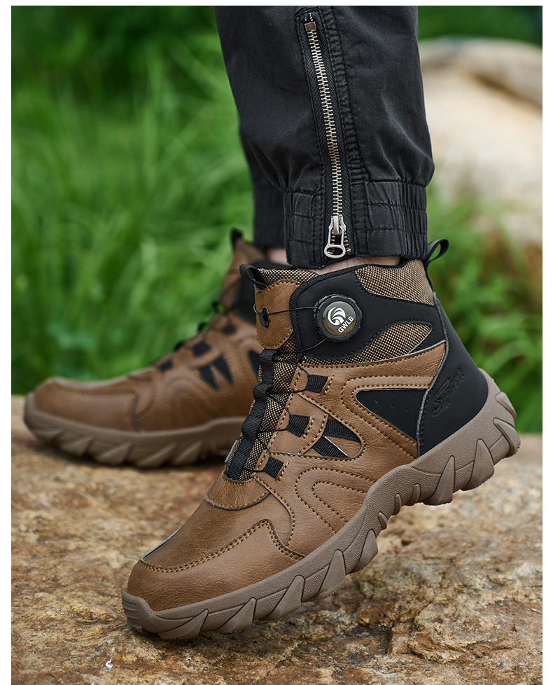 ダイヤル式安全靴 ハイカット 防水 鋼製先芯入り 作業靴 耐滑 釘踏み抜き防止 耐摩耗 ブラウン サイズ:27.5cm