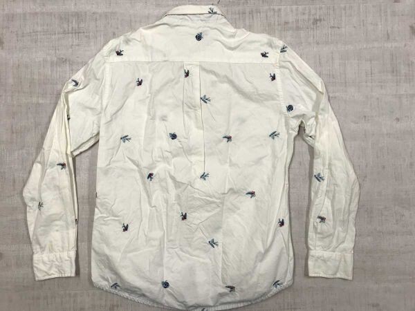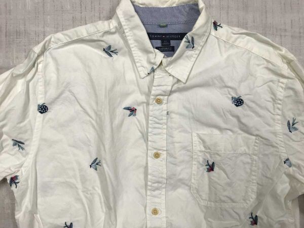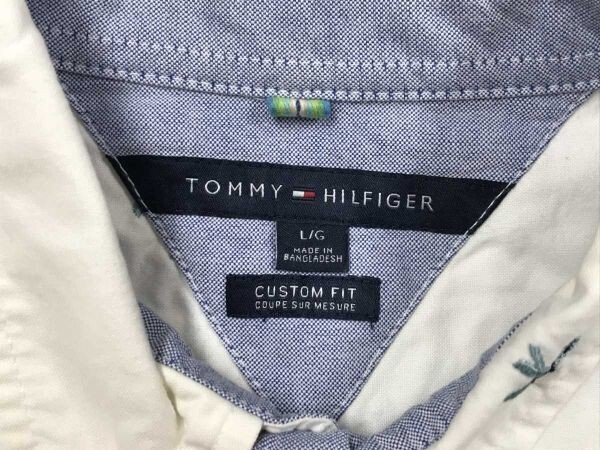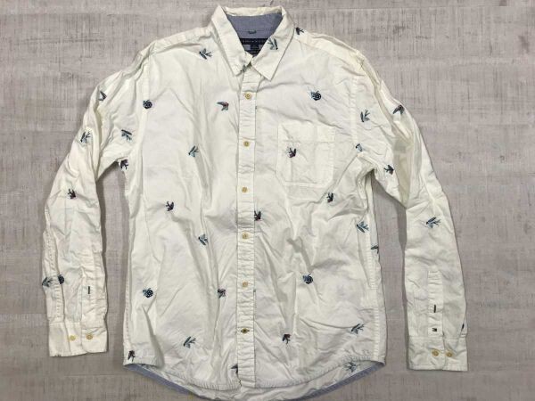 トミーヒルフィガー TOMMY HILFIGER アメカジ 古着 総柄 刺繍 長袖シャツ メンズ コットン100% スペアボタン2個有 L 白 です。
