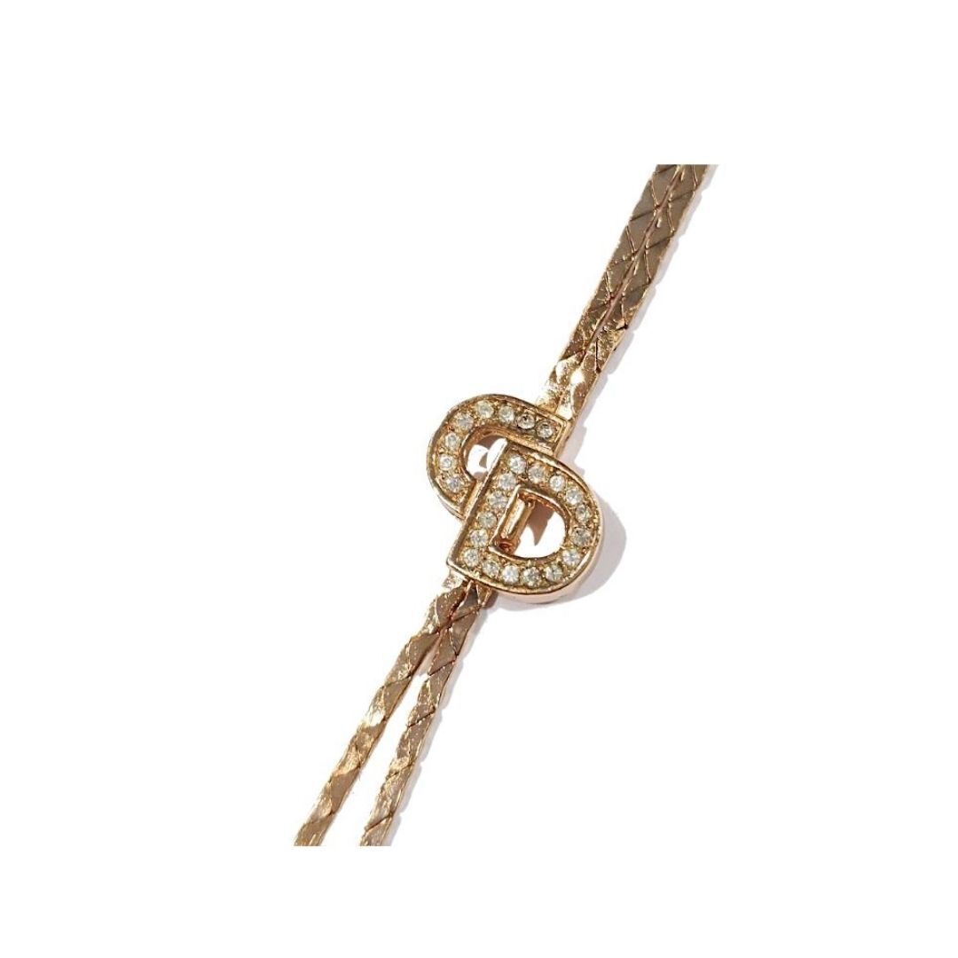 「ヴィンテージ Christian Dior クリスチャン ディオール CD ロゴ ラインストーン ネックレス チョーカー ゴールド」です。