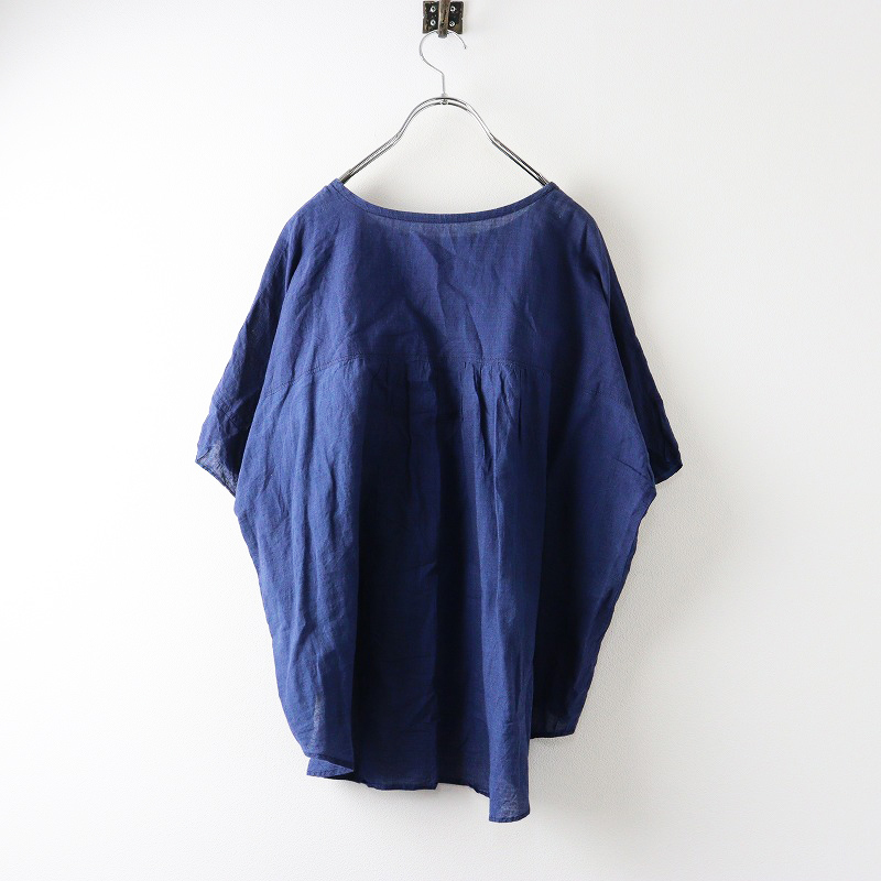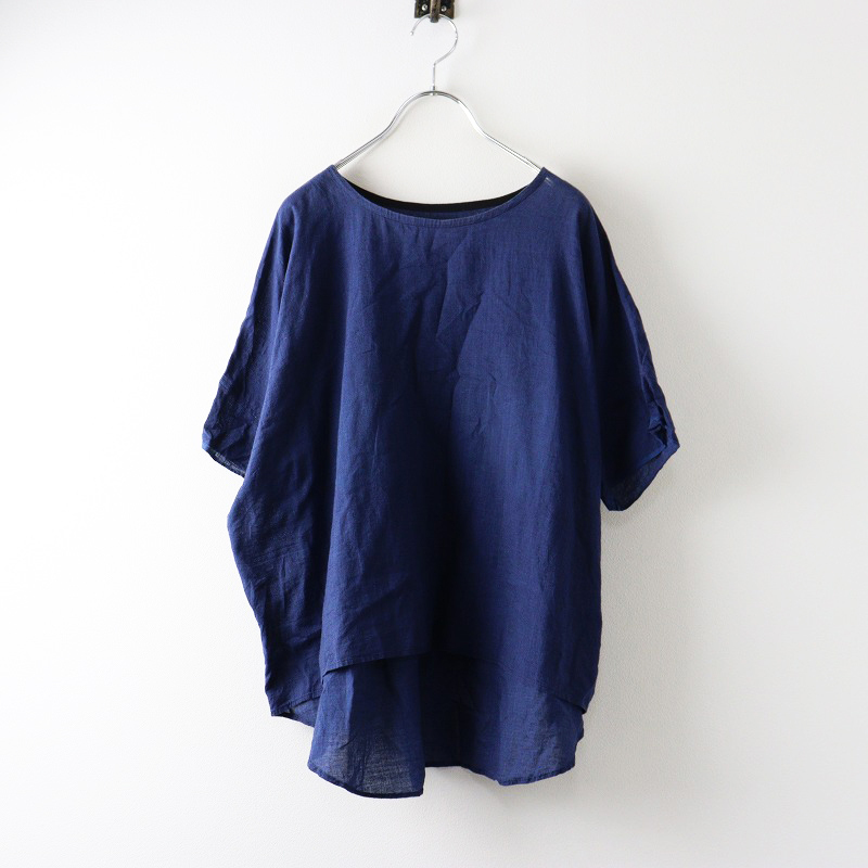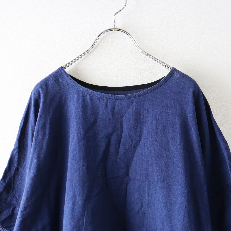 ヤンマ産業 yamma 染色加工 コットン ワイドシルエットプルオーバーカットソー ネイビー┃トップス ブラウス Tシャツ【2400014587210】