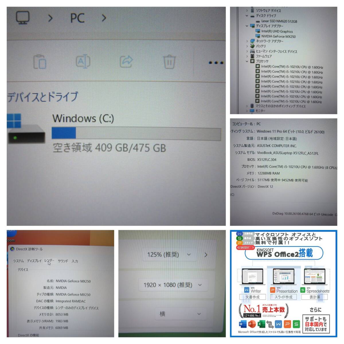 【テンキー・カメラ搭載・画像編集】◆ASUS Vivobook A512F / 15.6型 ◆ Core i5-10210U /新SSD 512GB / 12GB ■ MX150 ◆ win11 / Office