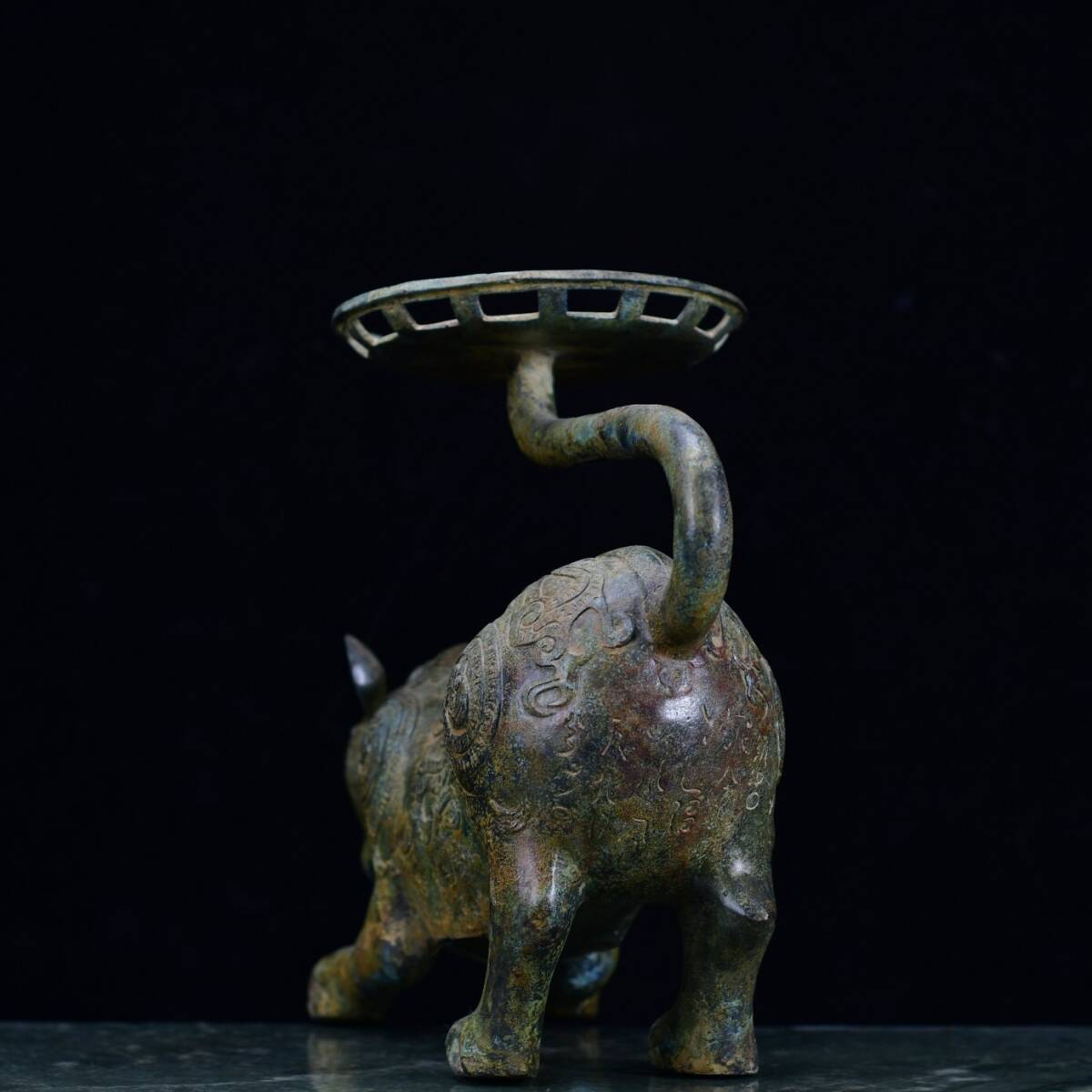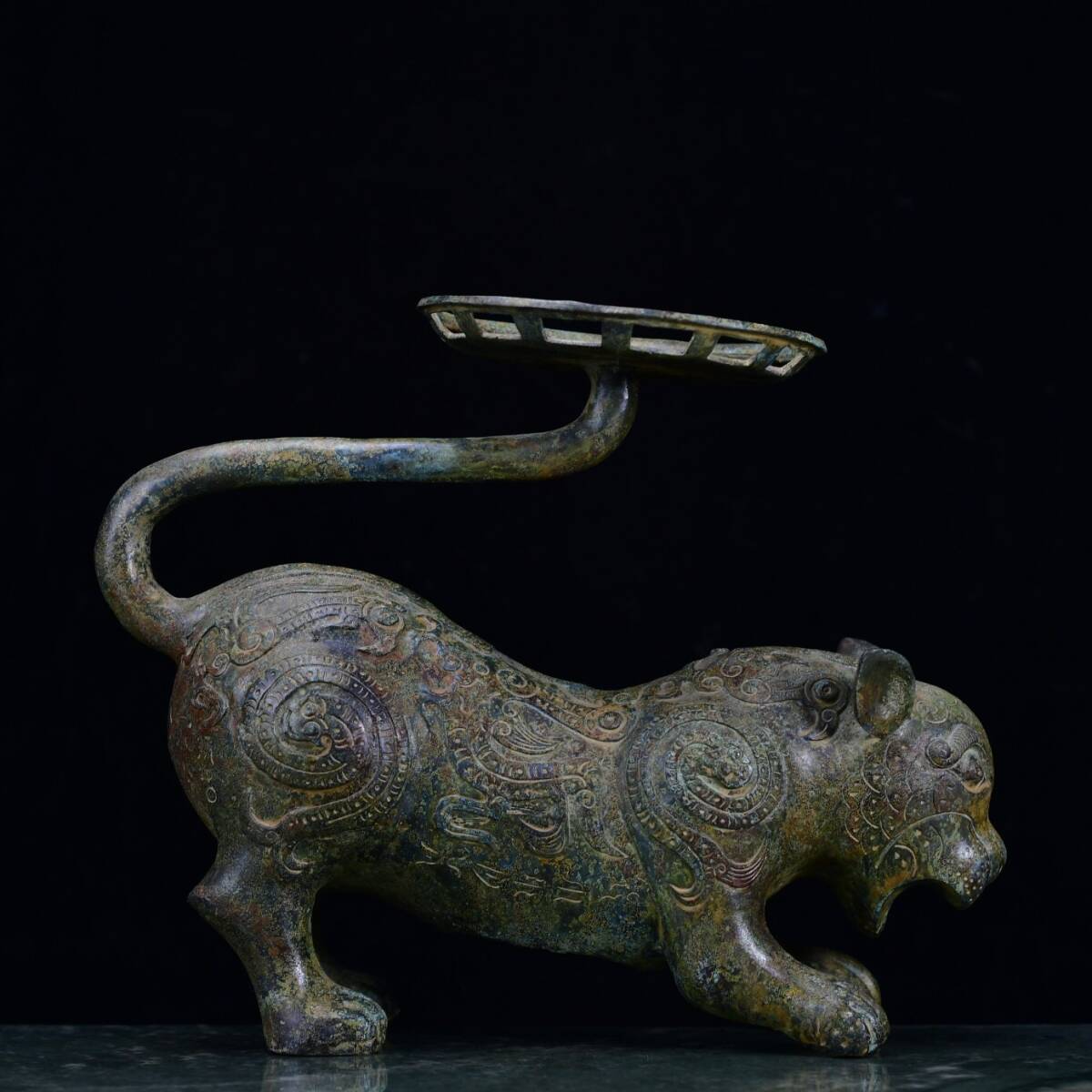 【超珍館蔵】漢 青銅製 老虎燈台 青銅器 置物 賞物 古賞物 古董品 古美術品 時代物 旧家蔵出 稀少珍蔵品