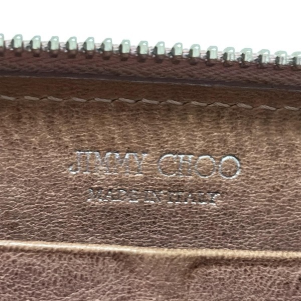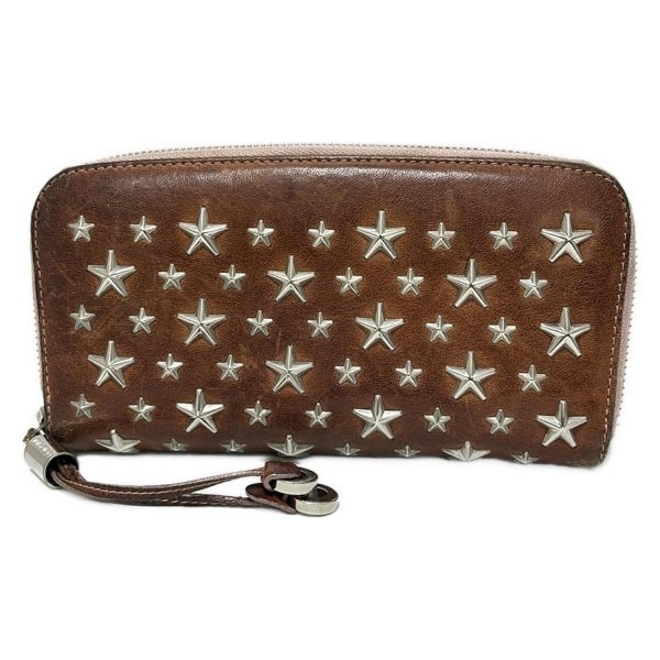 ジミーチュウ JIMMY CHOO 長財布 フィリッパ レザー ダークブラウン×シルバー スタッズ/ラウンドファスナー/ホログラムシールあり 財布