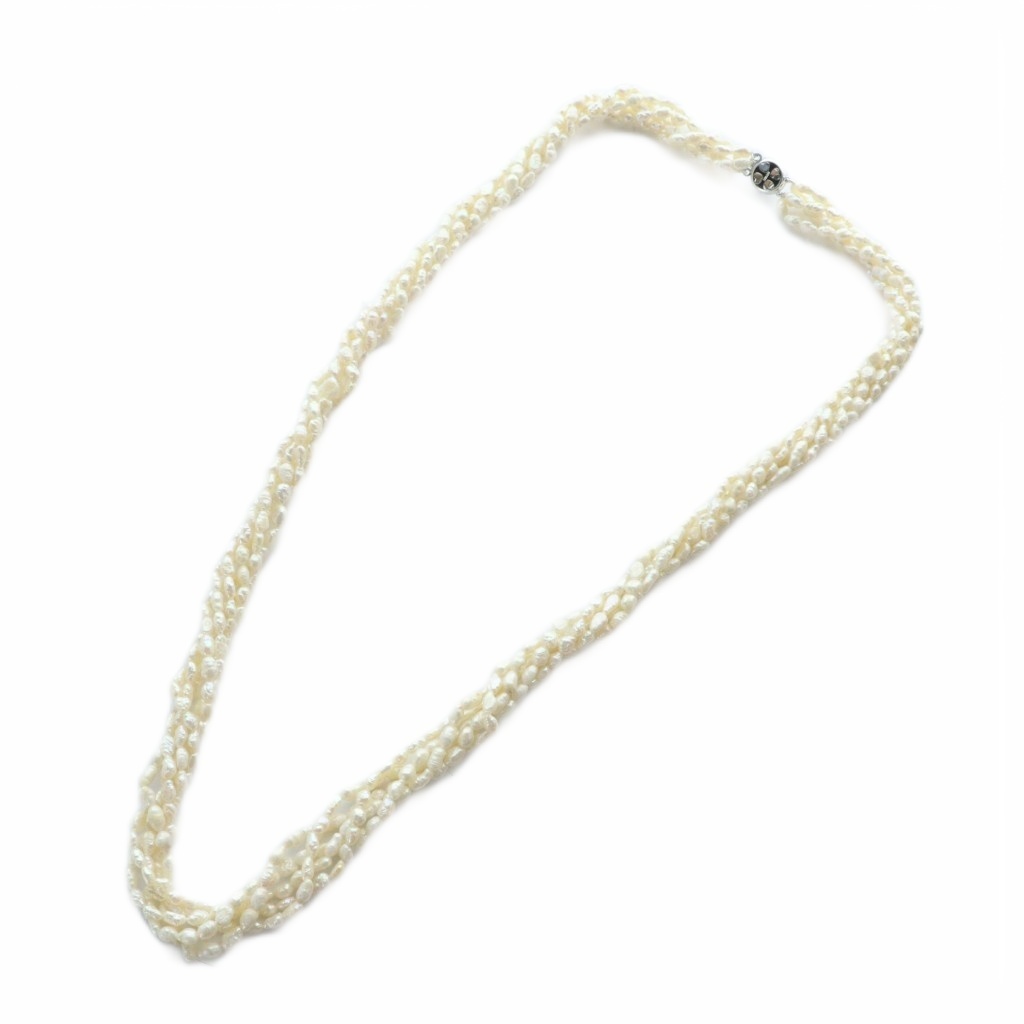 ノーブランド品 ネックレス アクセサリー 5連 ツイスト リアルパール 真珠 5mm 7mm Silver925 白 ホワイト ■GY11 /MQ レディース