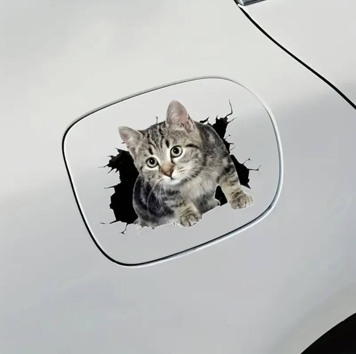 可愛い子猫が穴から飛び出す超リアルのステッカーです。