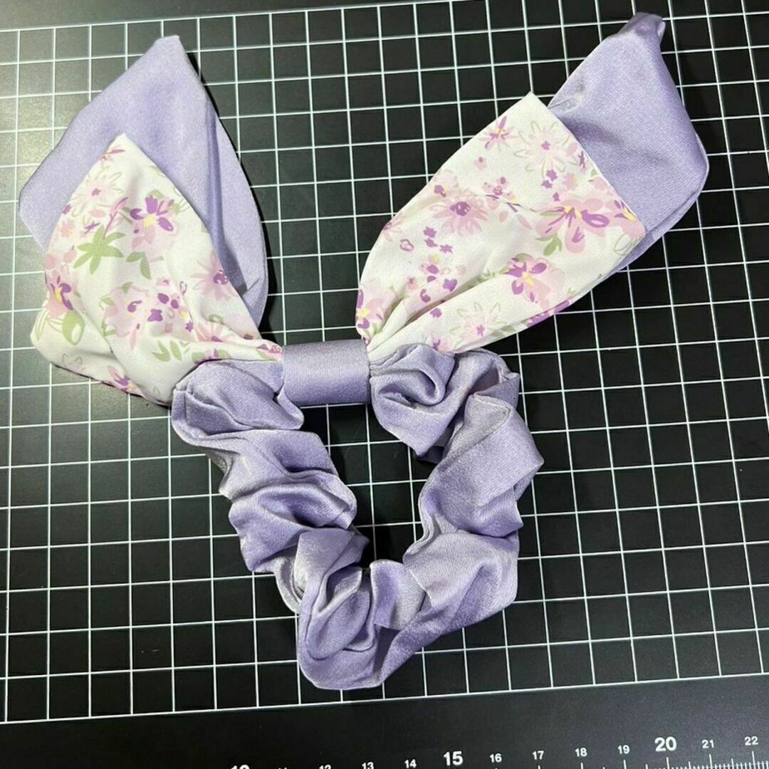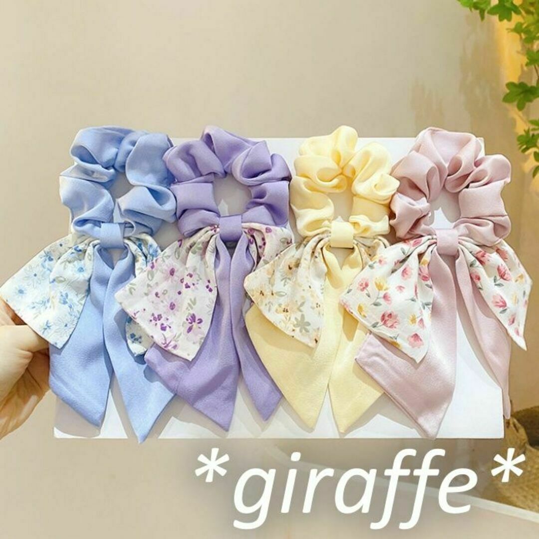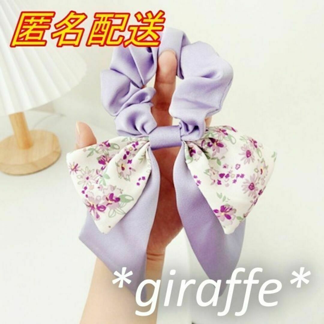 E367 匿名配送 シュシュ 花柄 リボン パープル 小花柄 髪ゴム ヘアゴム ヘアアクセサリー