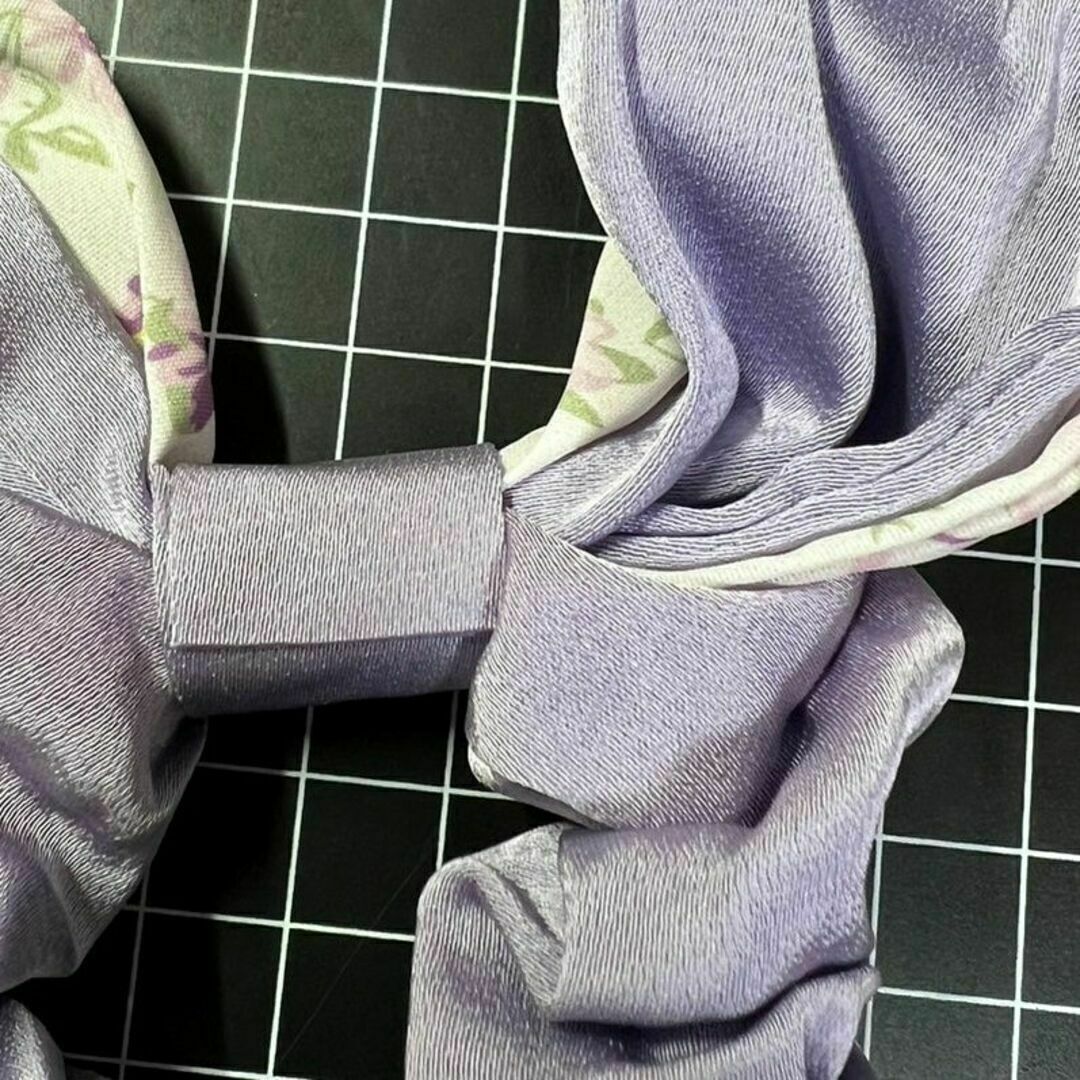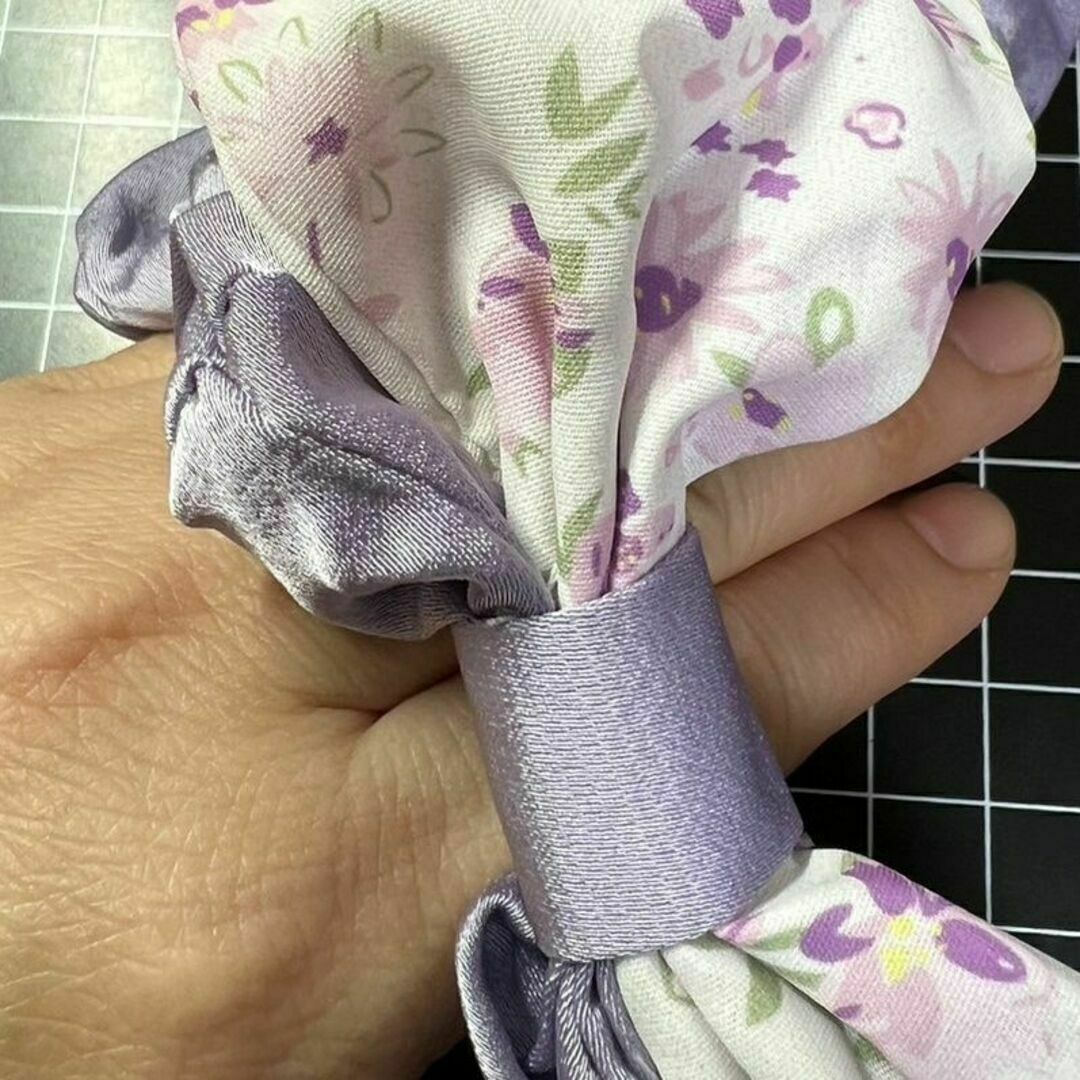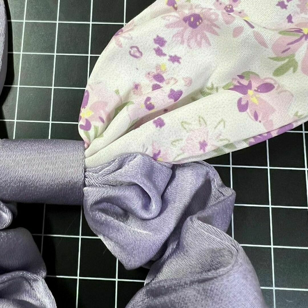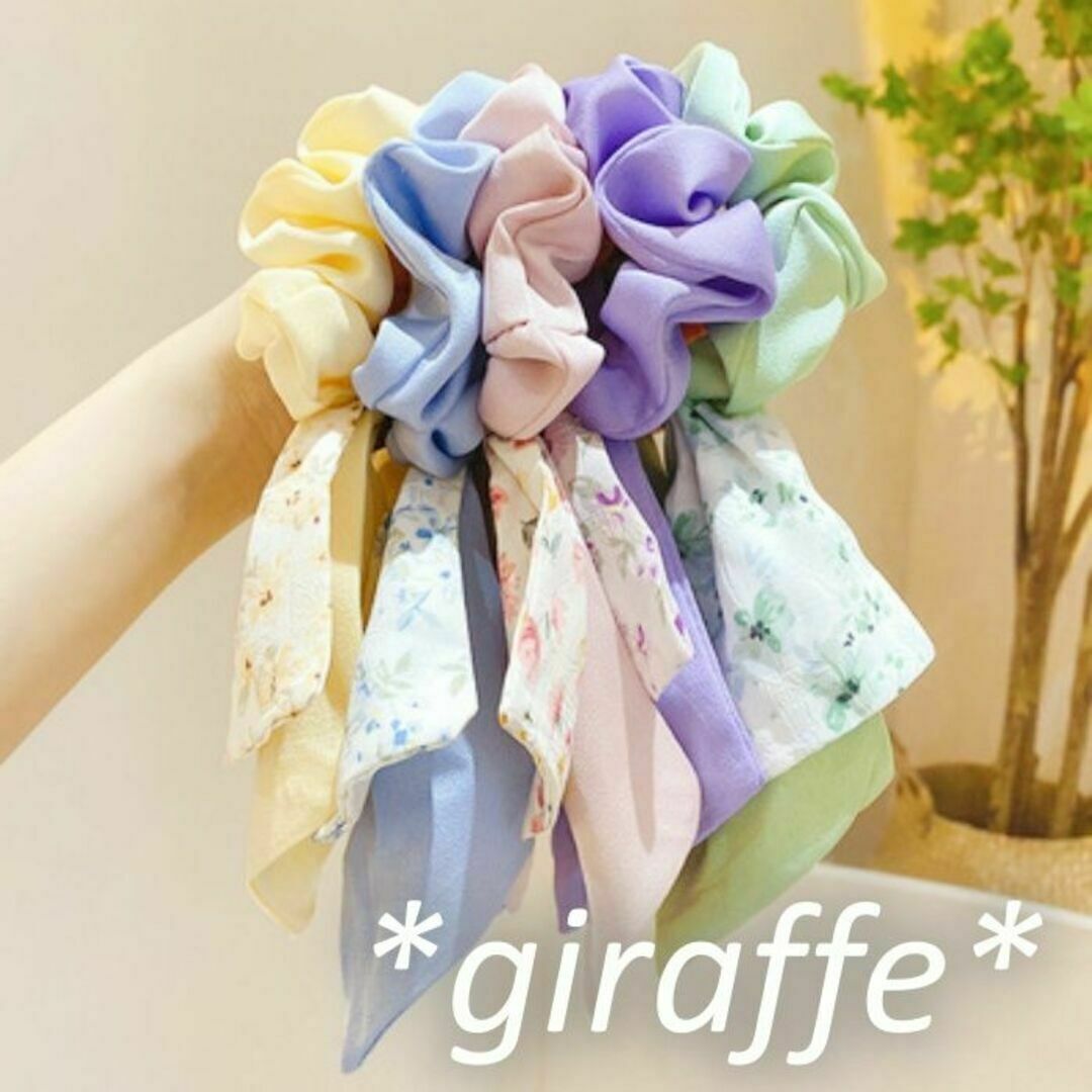 E367 匿名配送 シュシュ 花柄 リボン パープル 小花柄 髪ゴム ヘアゴム ヘアアクセサリー