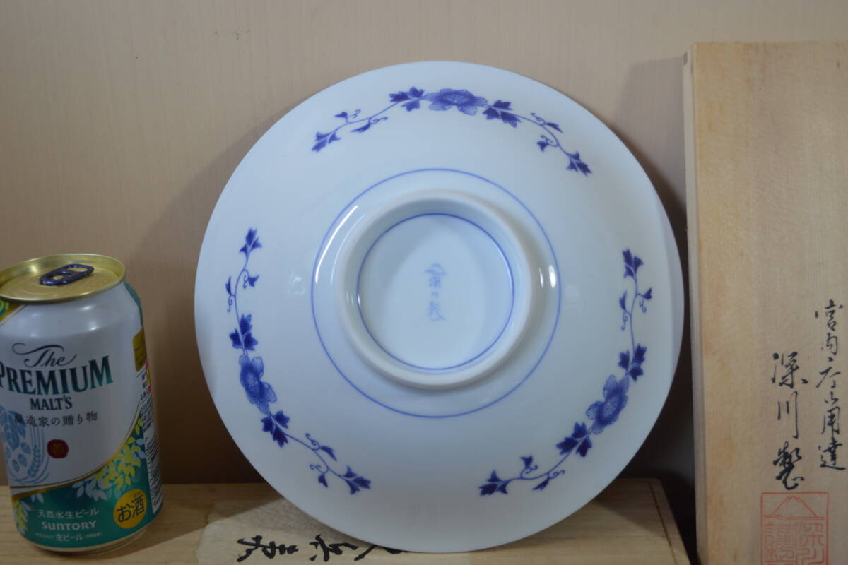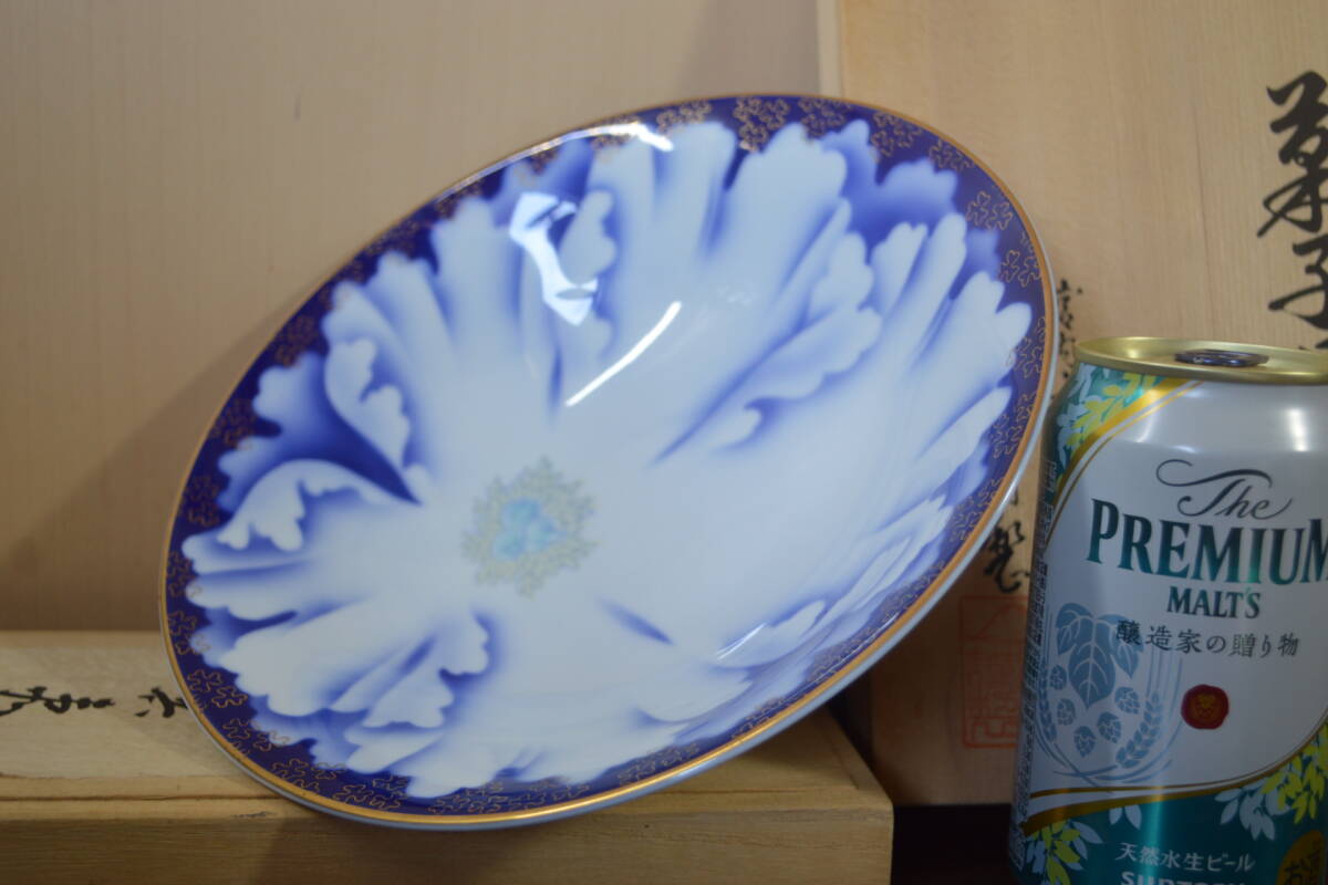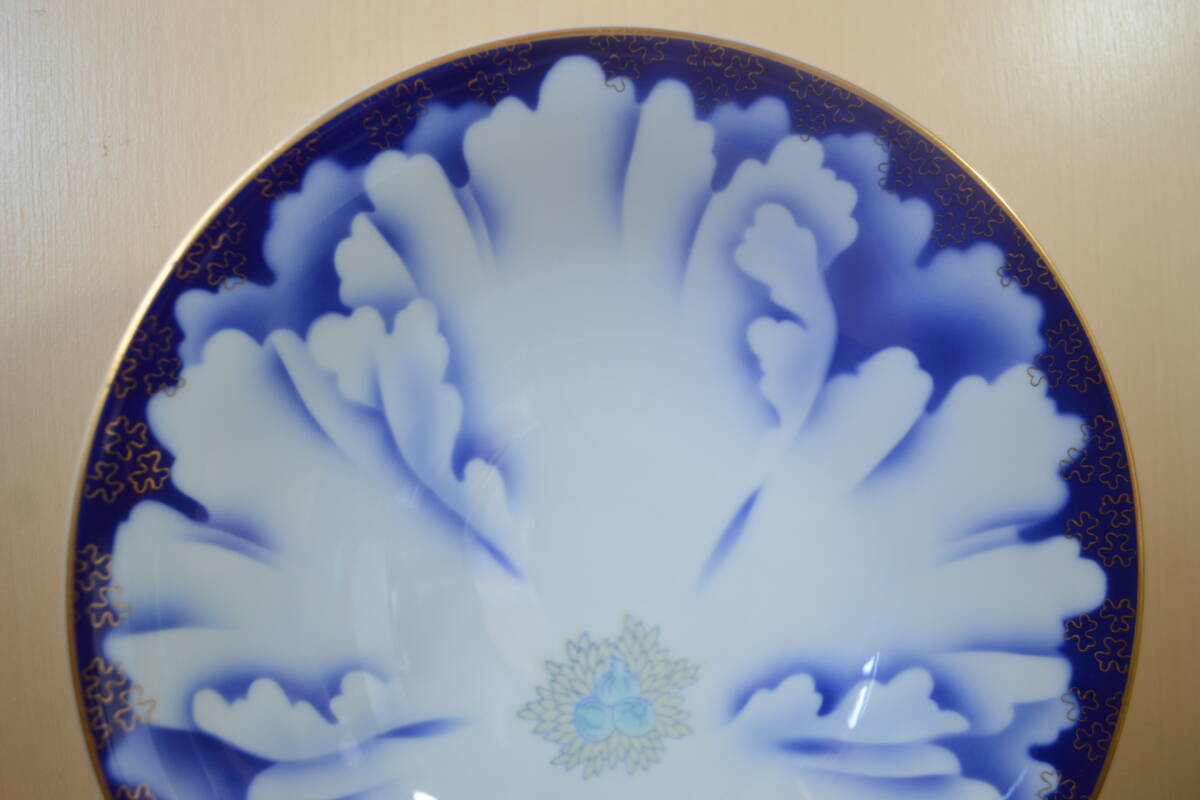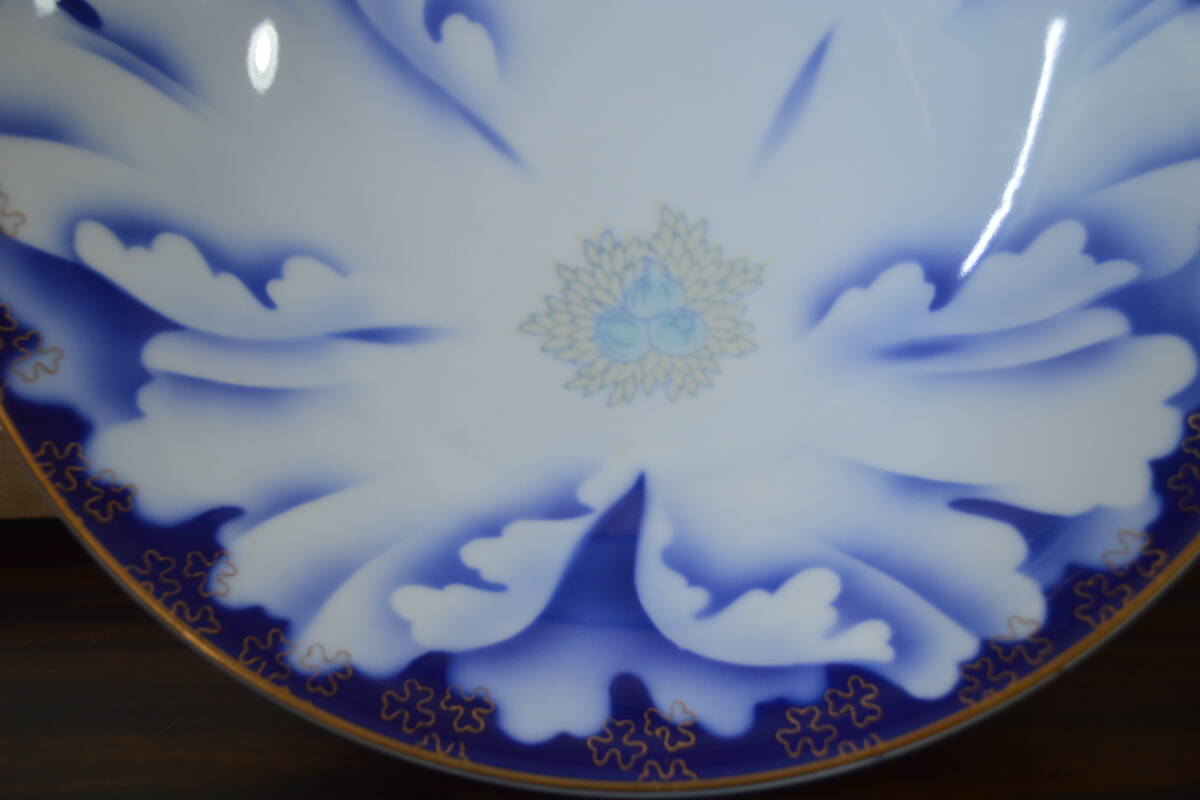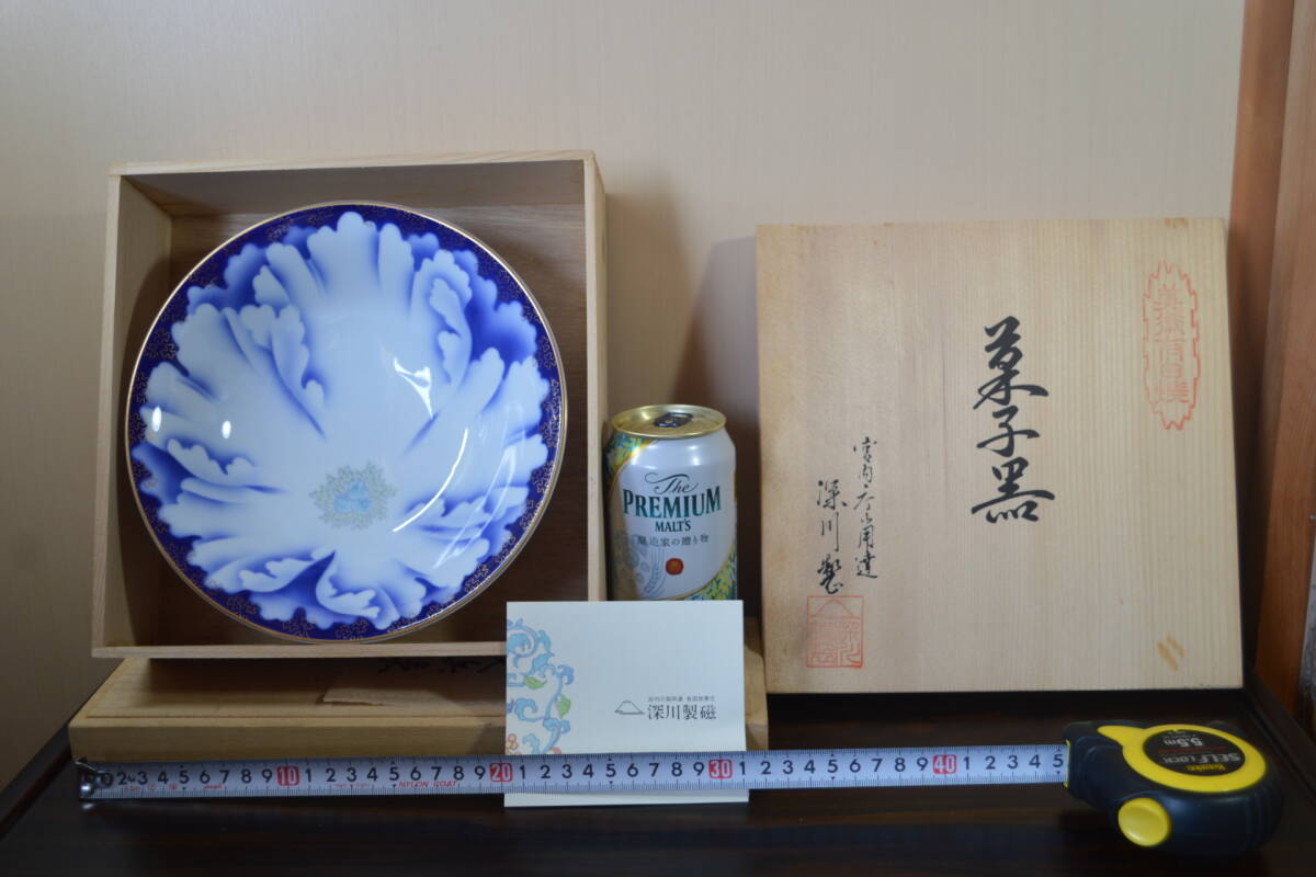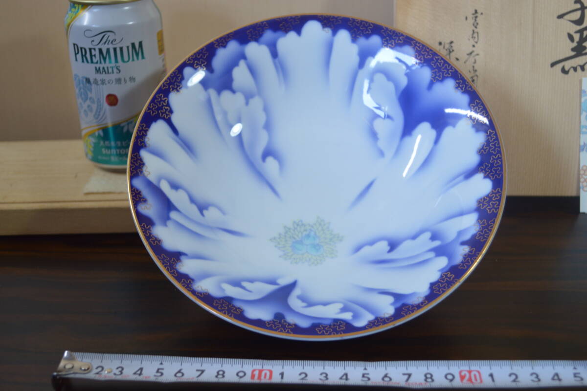 未使用 /深川/製磁 /牡丹/金/ミル/菓子/ 平鉢 /直径/約22cm/共箱/付/有田/焼/金彩/美術/陶磁器/鉢/大/皿/焼き物/陶芸/和食器/サラダ