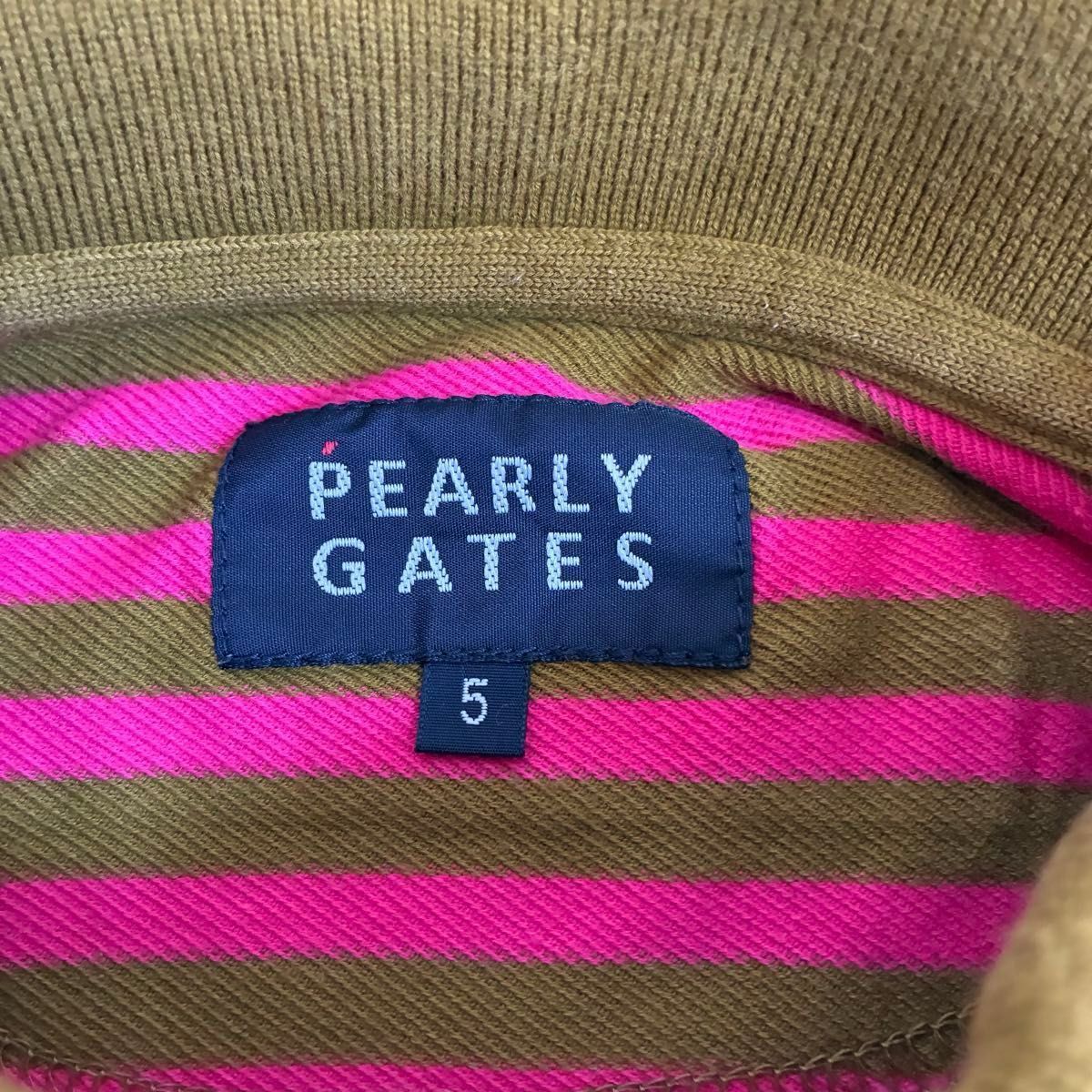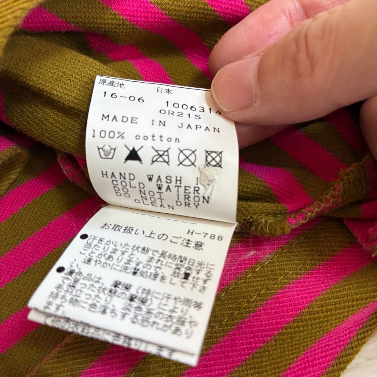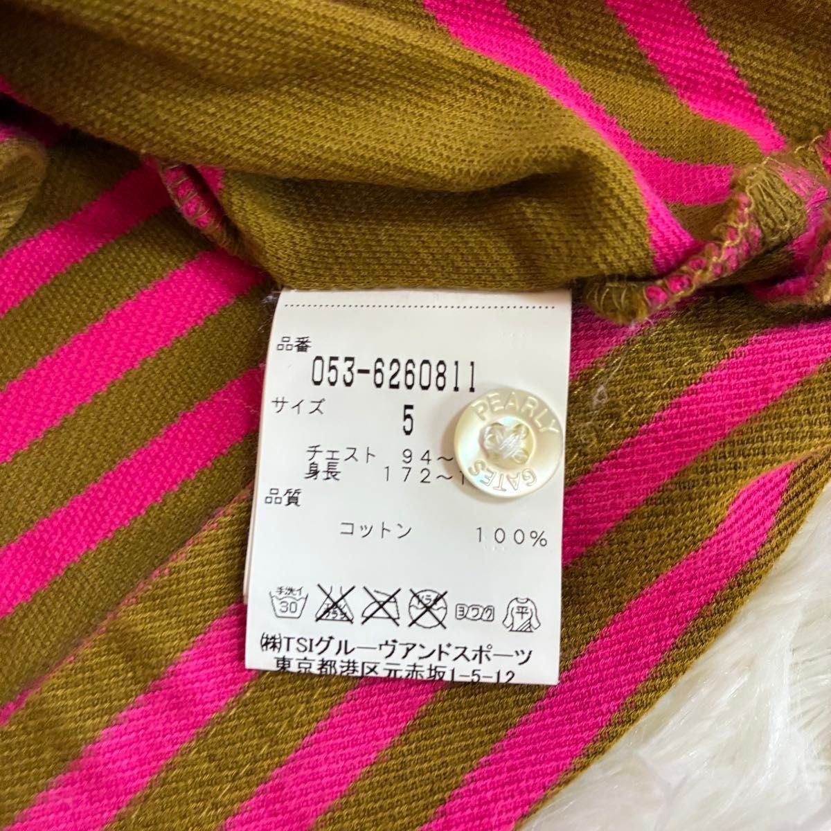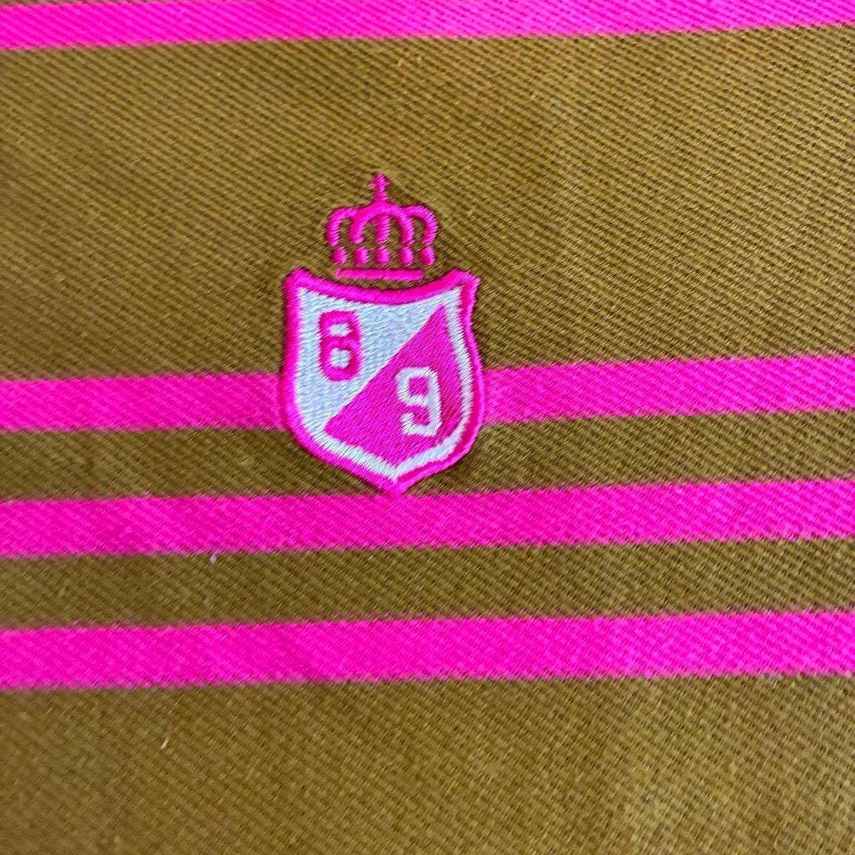 ブラウンとピンクのボーダー柄が特徴のポロシャツです。胸元にはエンブレムの刺繍があり、カジュアルながらも上品な印象を与えます。普段使いはもちろん、ゴルフウェアなどにもおすすめです。