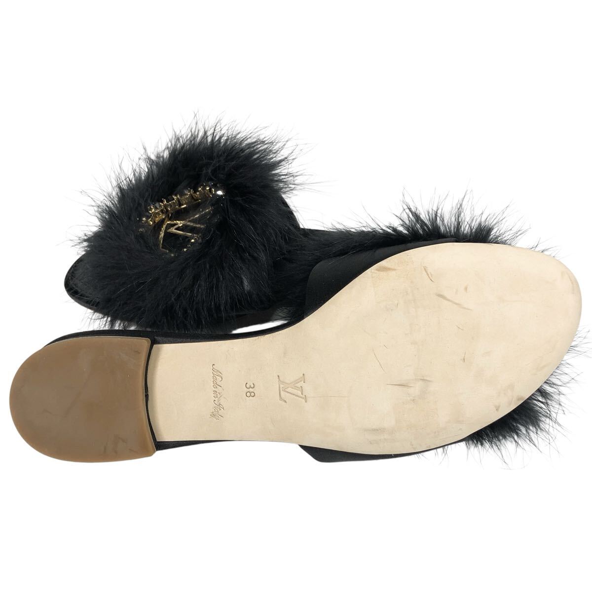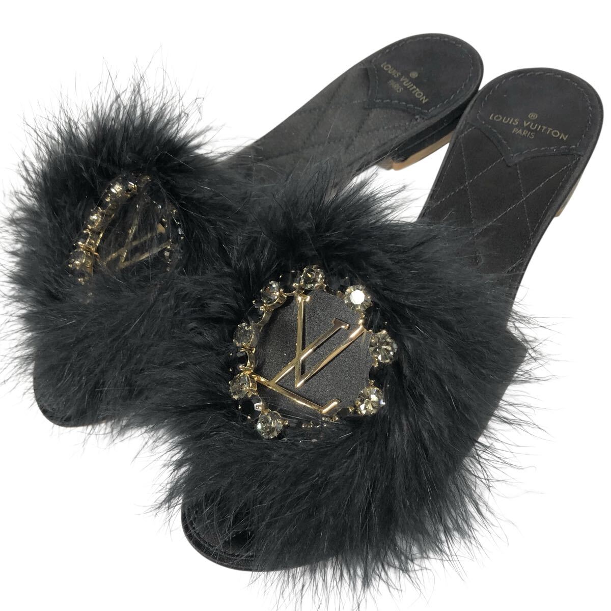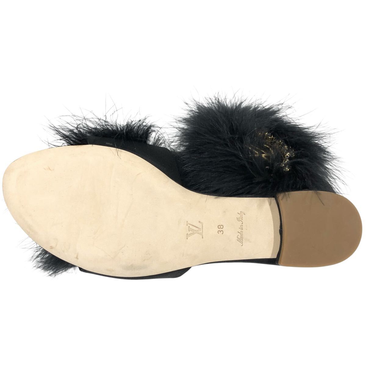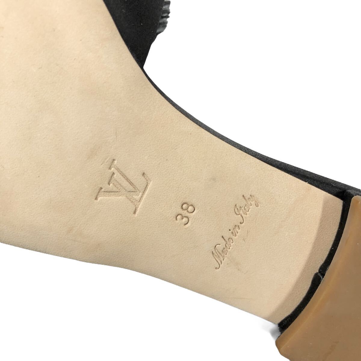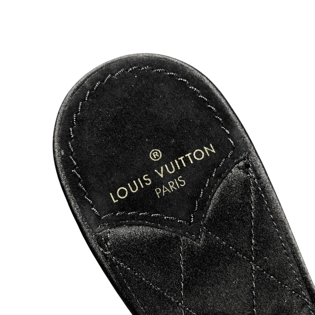 未使用品【ルイヴィトン】LOUIS VUITTON 靴 24.5cm 黒 LV金具 ミュール サンダル カジュアルシューズ サテン 女性用 レディース 伊製 38
