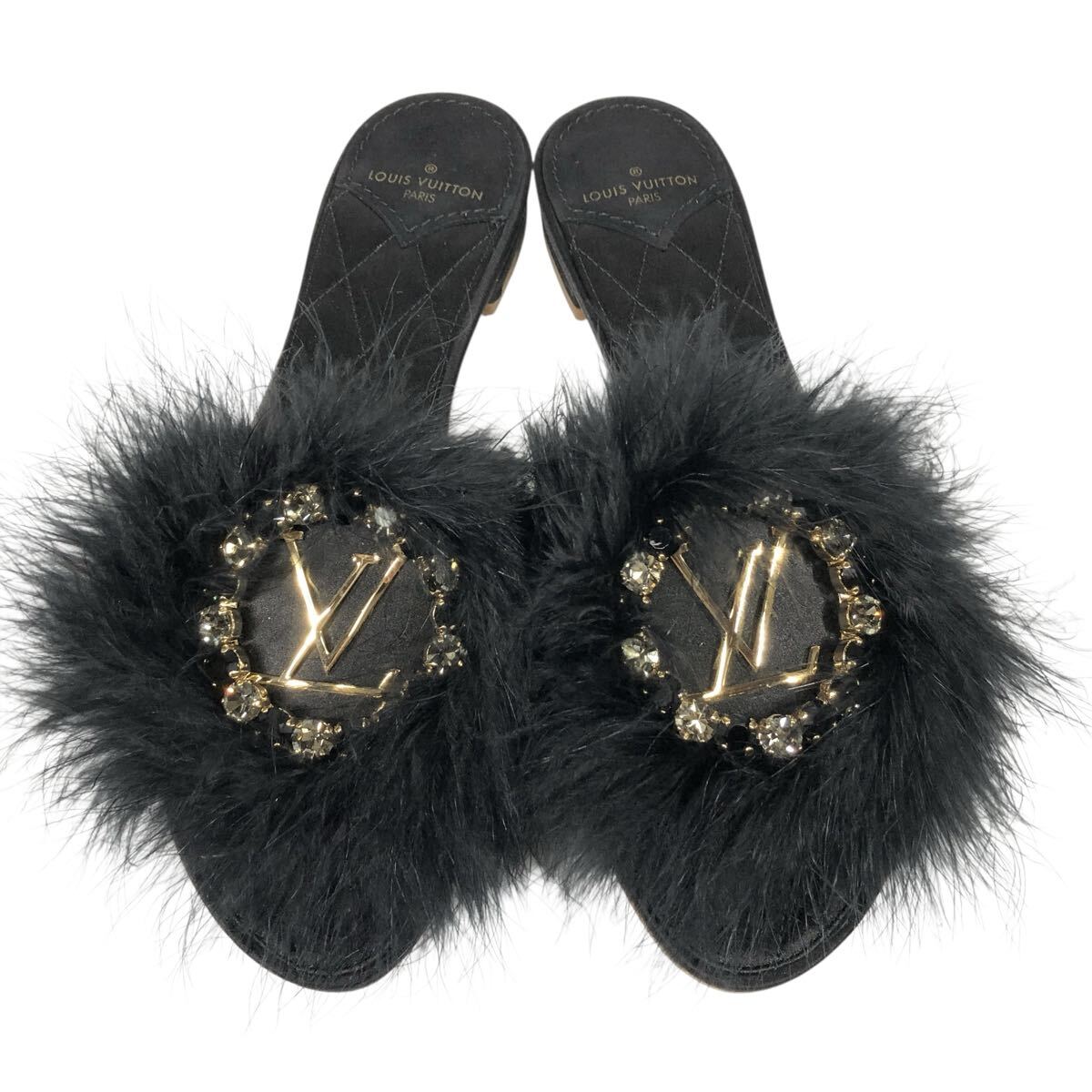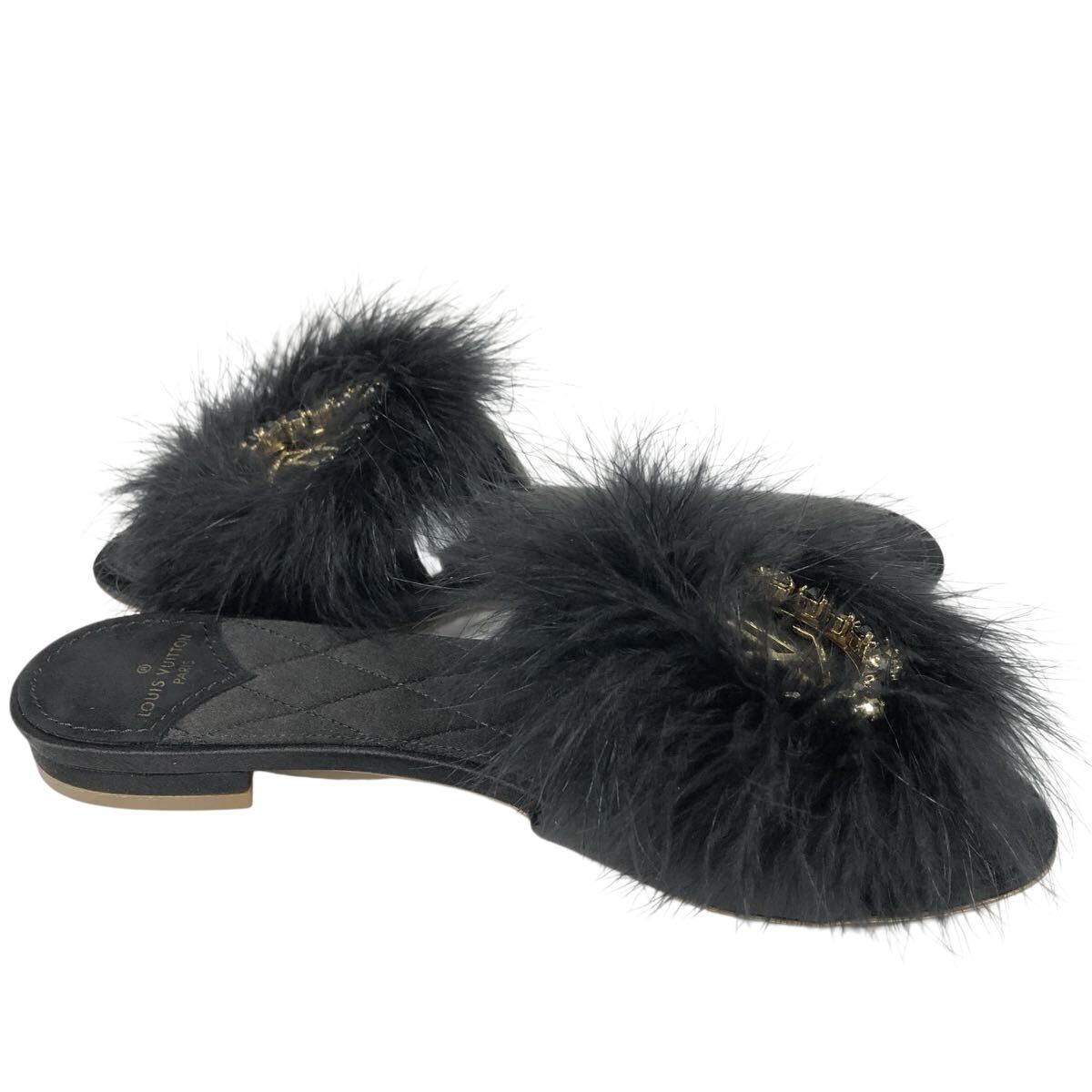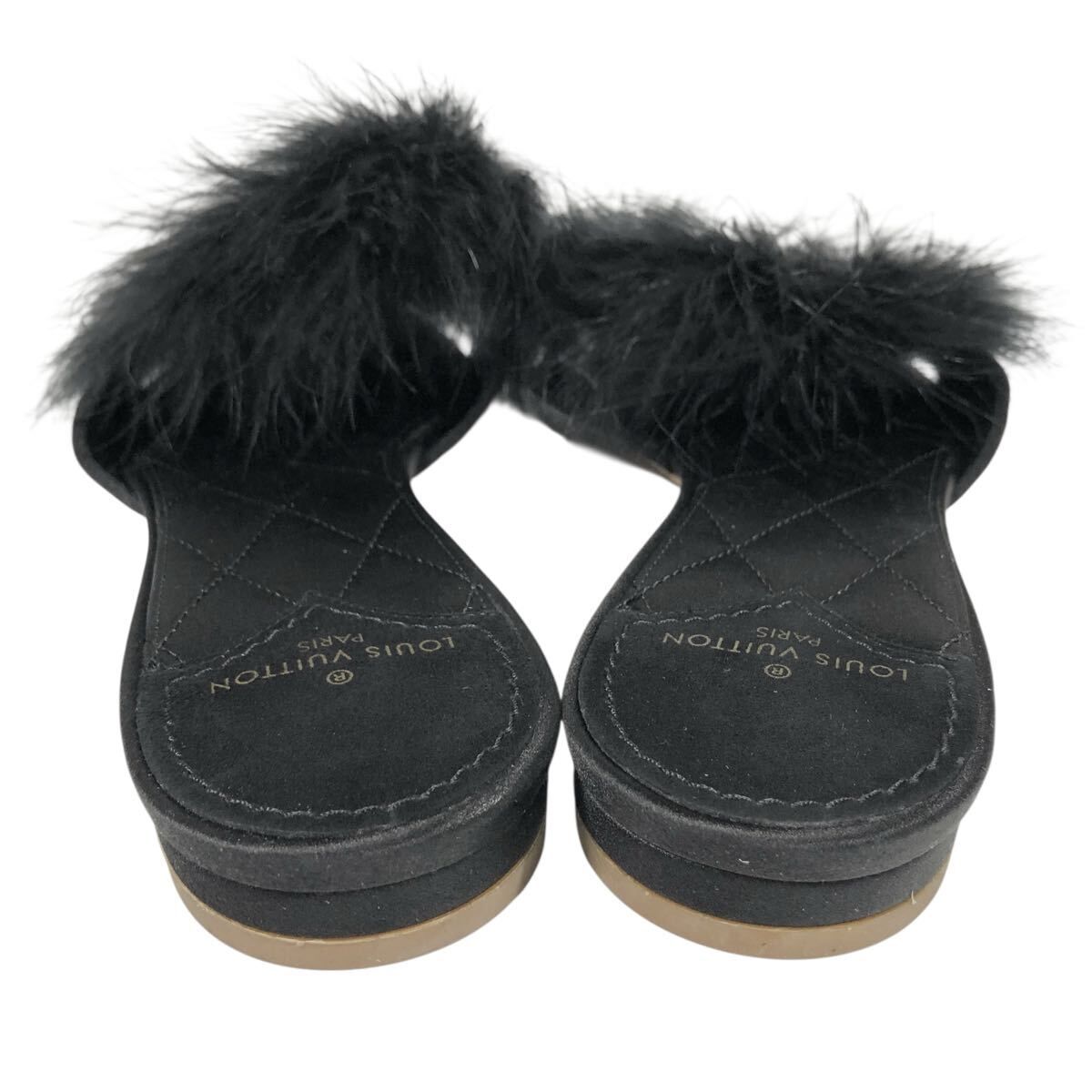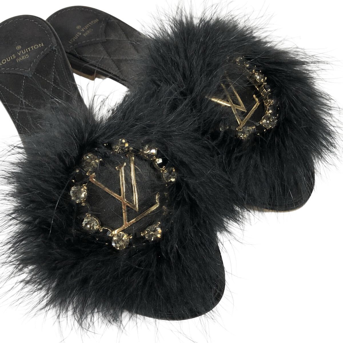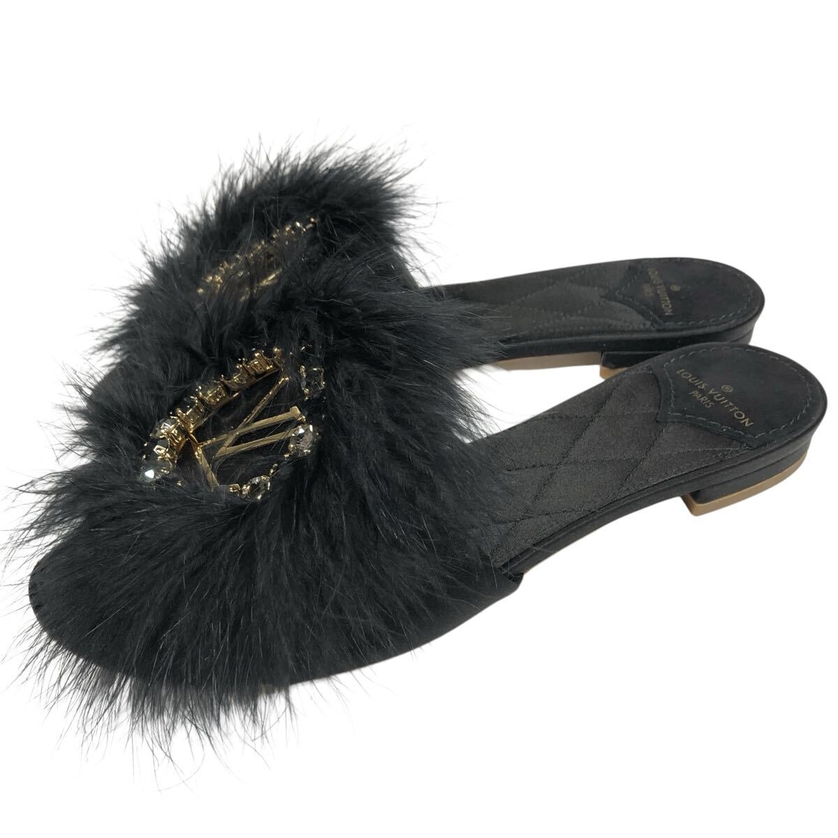 未使用品【ルイヴィトン】LOUIS VUITTON 靴 24.5cm 黒 LV金具 ミュール サンダル カジュアルシューズ サテン 女性用 レディース 伊製 38