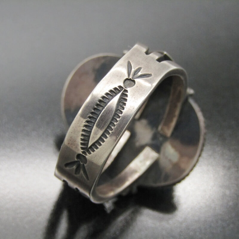 SIZE | 号数:約 23.5号 縦幅:約 25.5mm (石)縦:約 21.4mm (石)横:約 15.3mm 重さ:約 15.1g ※インディアンジュエリーにはハンドメイド特有のゆがみ・ずれや傷等がある為、表記サイズには多少の誤差がございます。 |