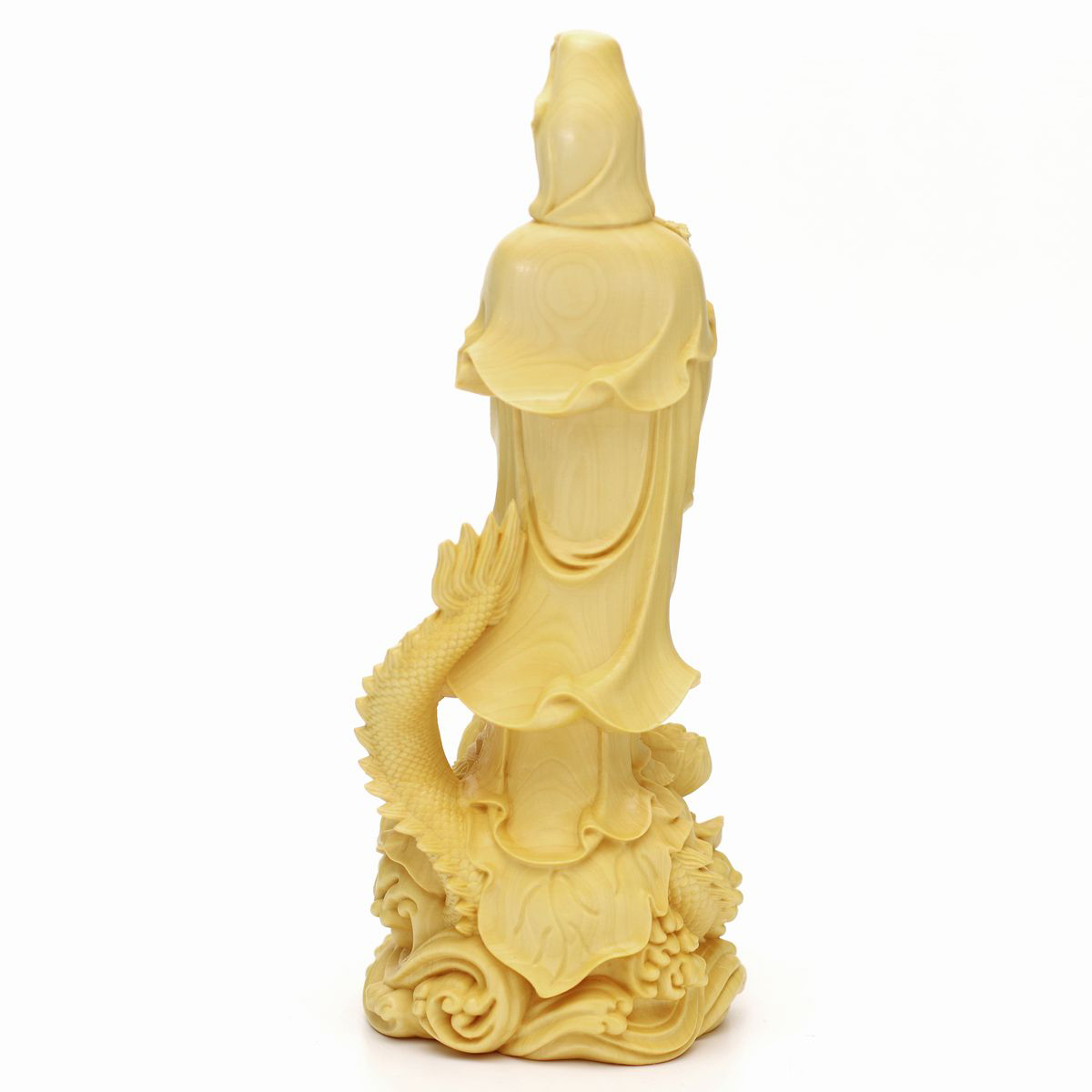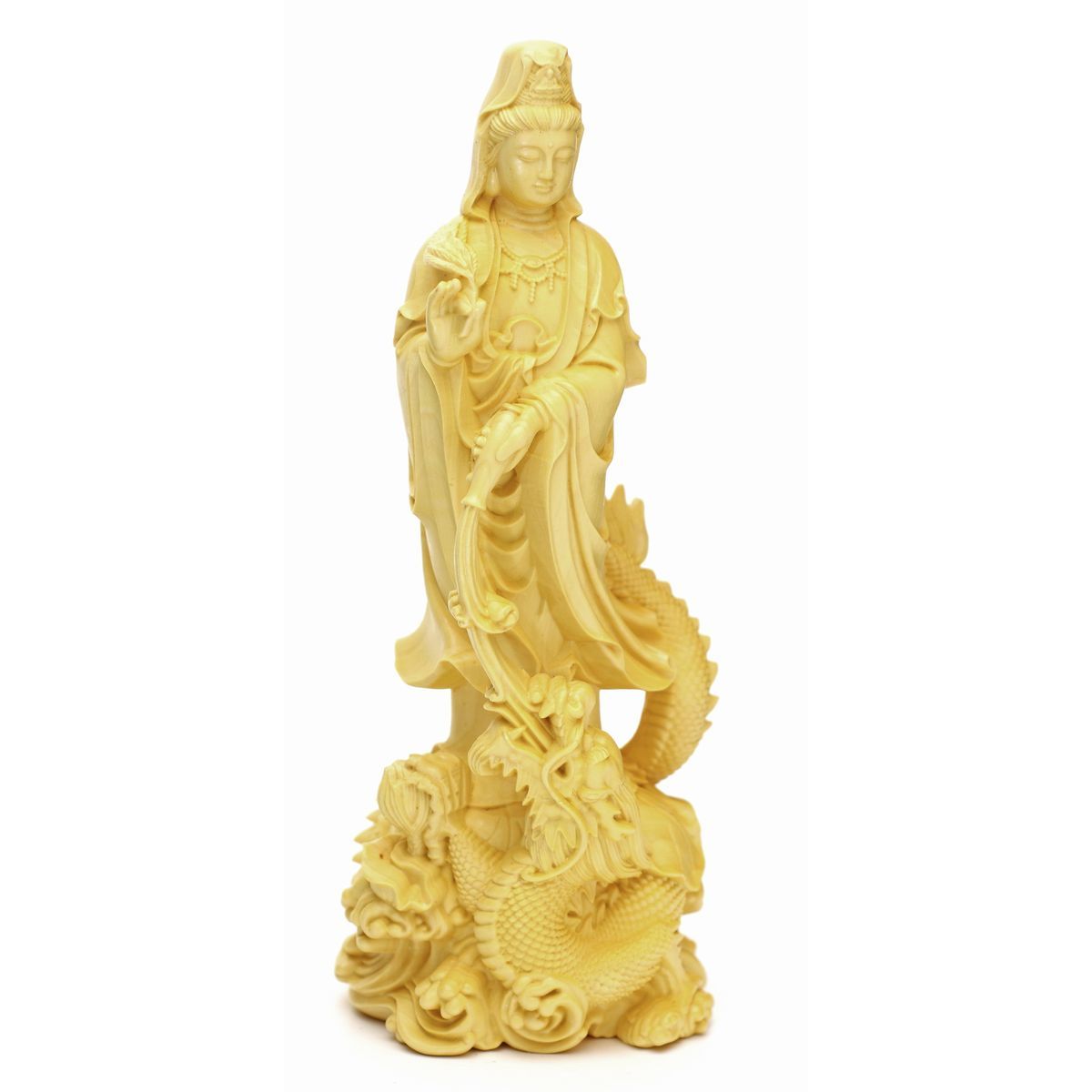 | 騎龍観音 17cm 木彫仏像 彫刻 ツゲ 龍神 龍乗観音 龍観音 龍上観音 厄除け | ||