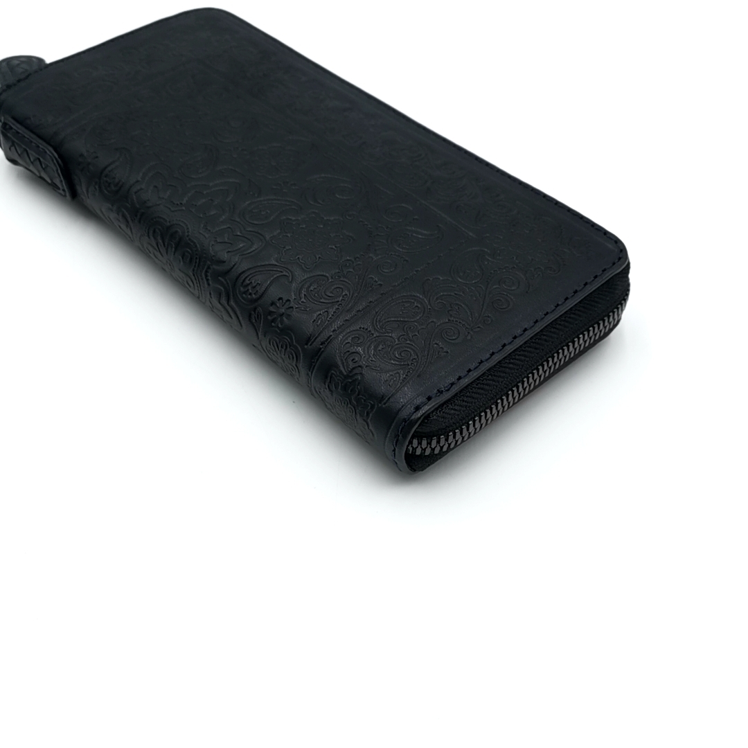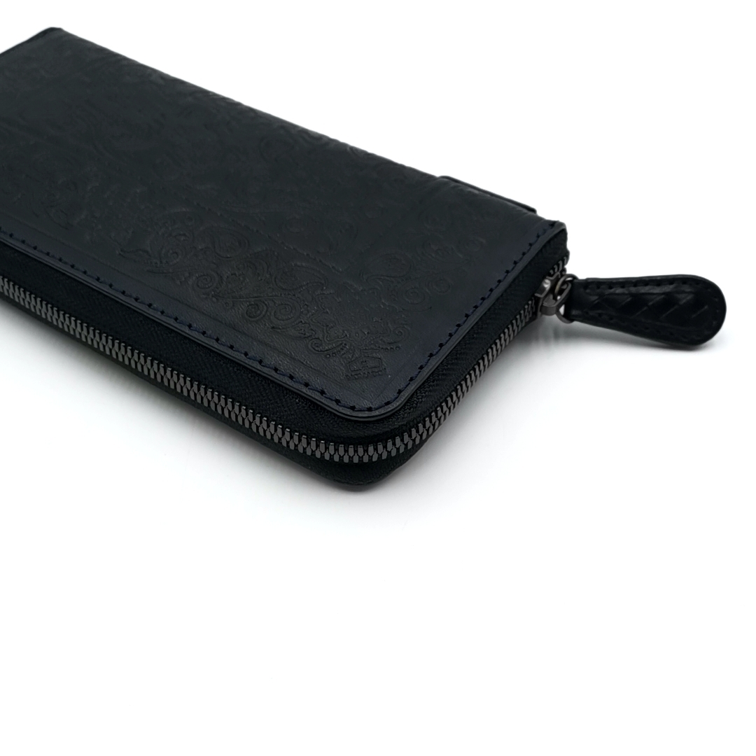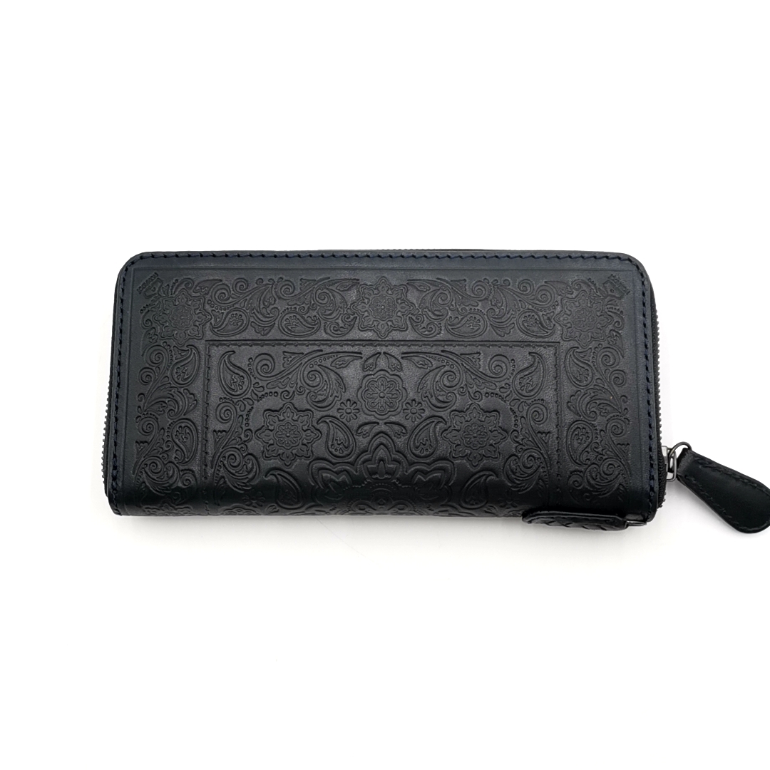 ・送料無料 超美品 ノマドイ NOMADOI 長財布 財布 ロングウォレット ラウンドファスナー ラウンドジップ アラバマ エンボス加工 型押し レザー 本革 黒 ブラック系 メンズ
