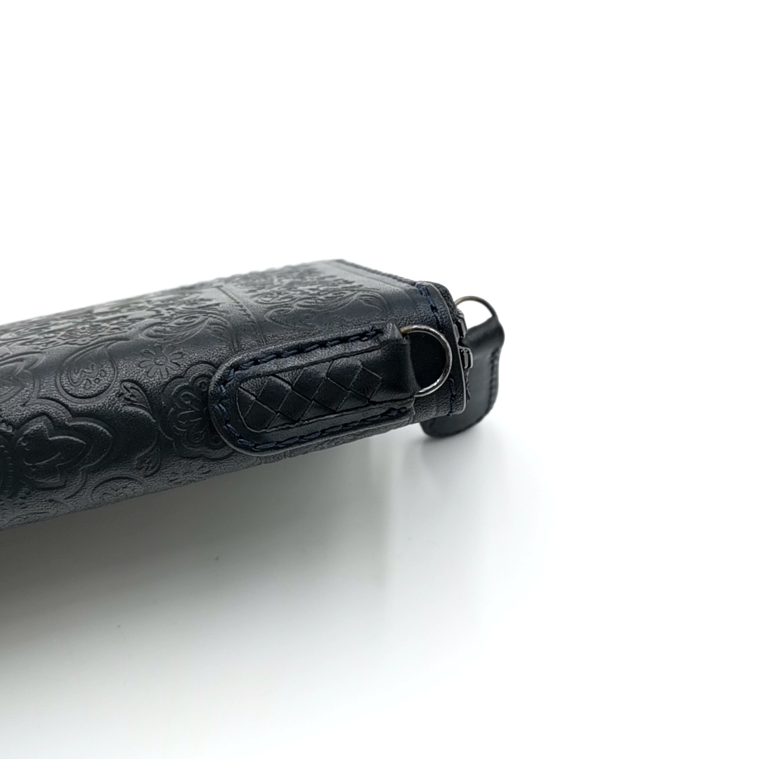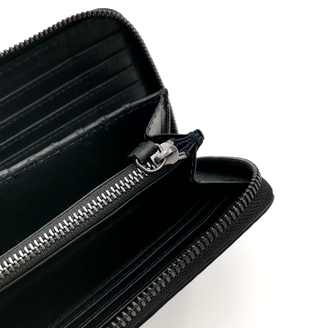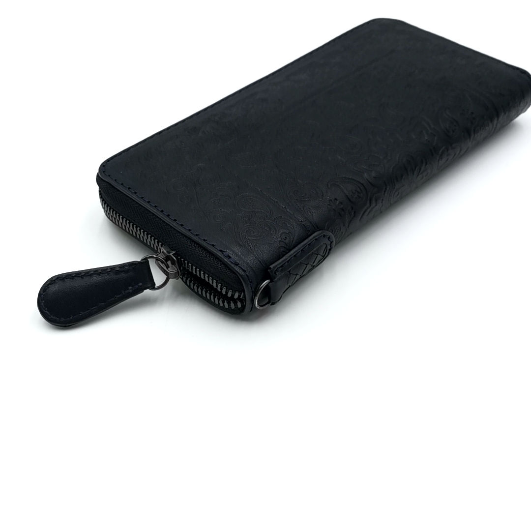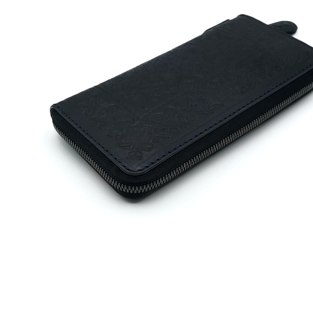 ・送料無料 超美品 ノマドイ NOMADOI 長財布 財布 ロングウォレット ラウンドファスナー ラウンドジップ アラバマ エンボス加工 型押し レザー 本革 黒 ブラック系 メンズ