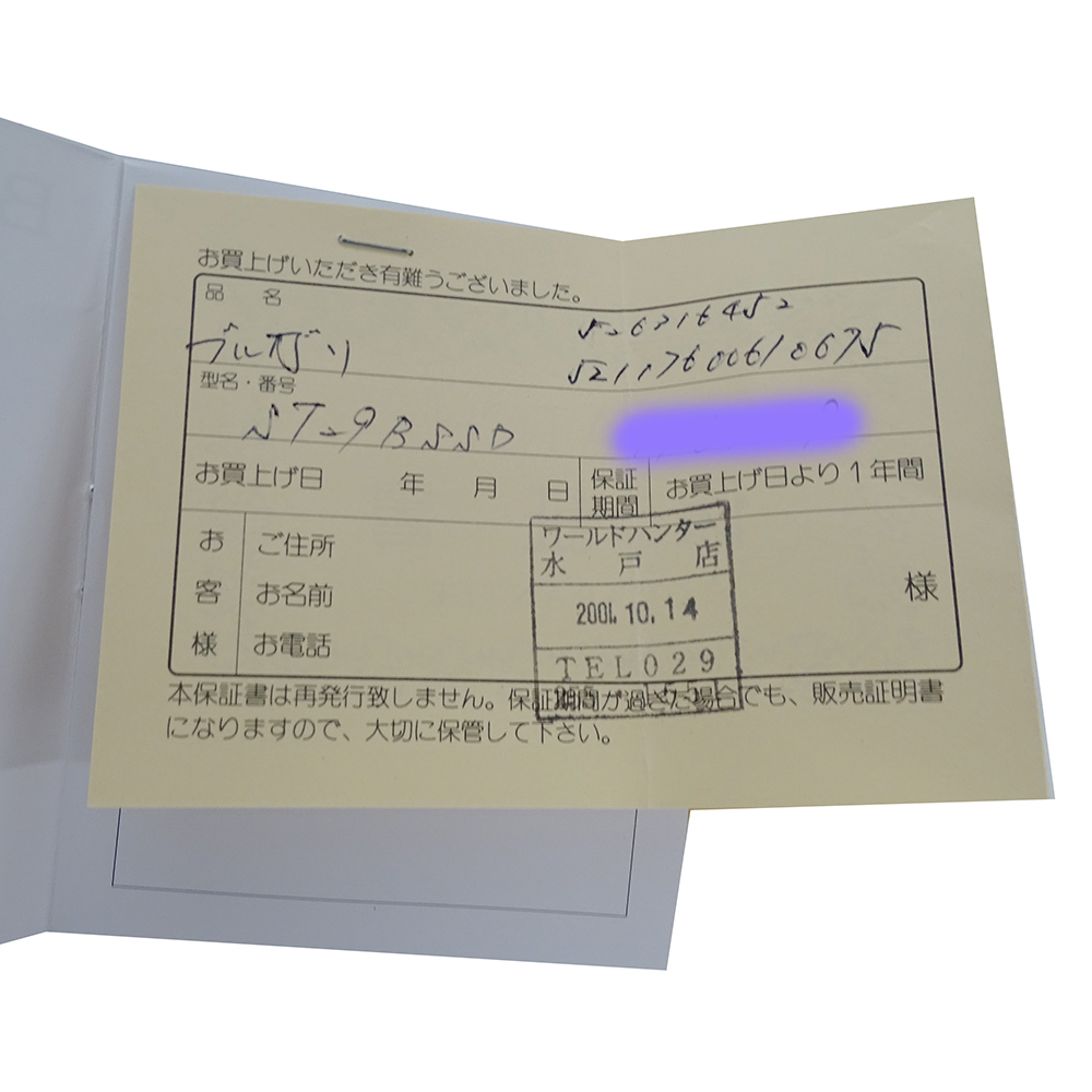 | 付属品 | 保存箱(傷汚れ有) 冊子2 取扱説明書 保証書 ※記載のないものは原則付属は御座いません。 |