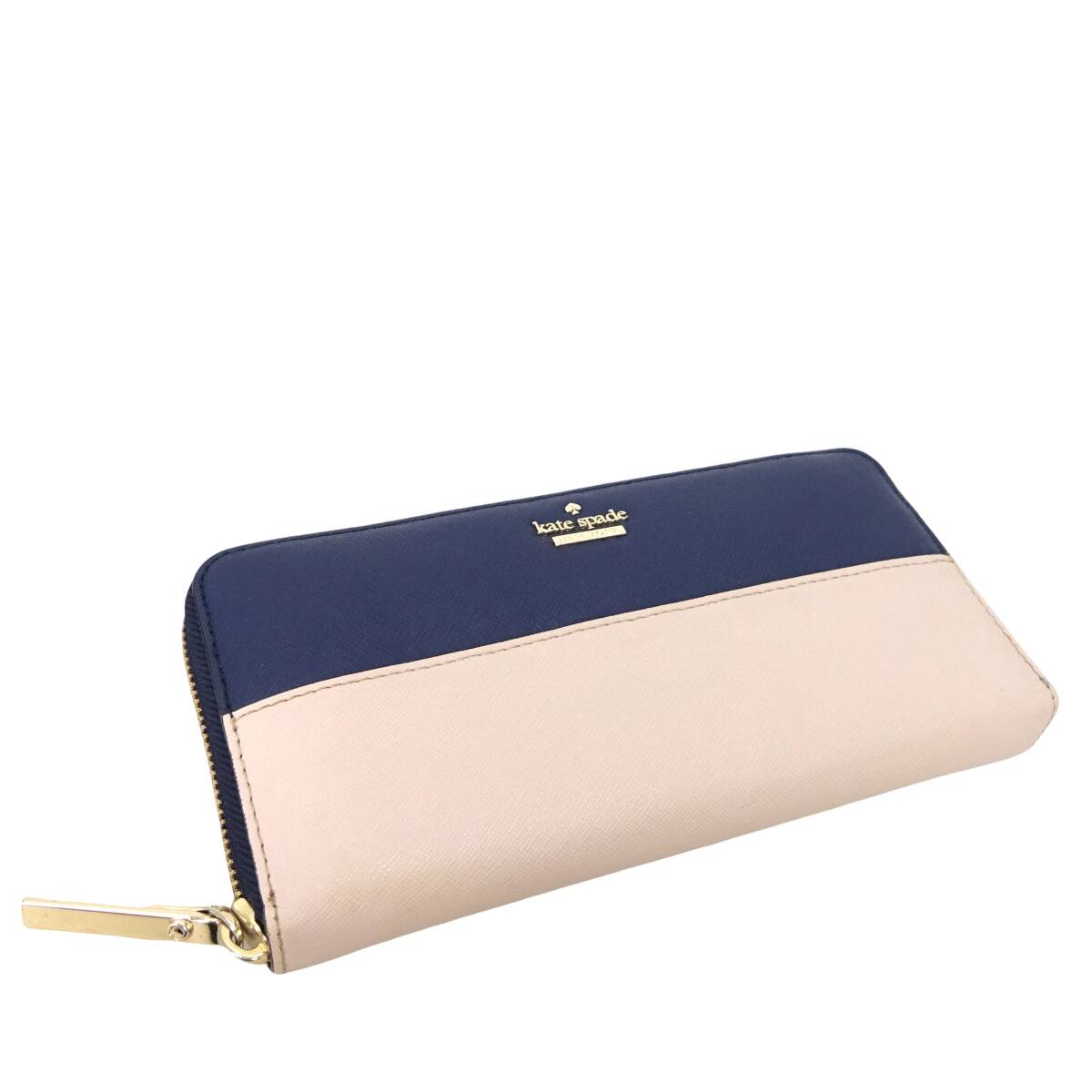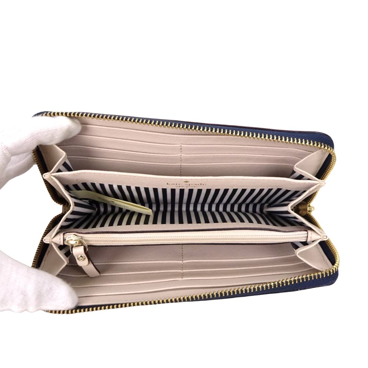 本物 未使用■ケイトスペード■バイカラー レザー アコーディオンジップウォレット ネイビー グレージュ ラウンドファスナー長財布 /905401
