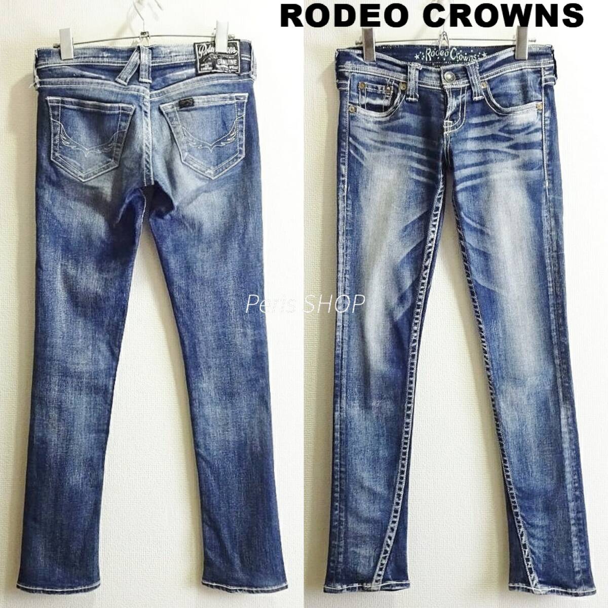 即決★ 送料無★ ロデオクラウンズ シューカットスーパースキニーデニム W73cm 強ストレッチ 藍青 レディース TYPE2 Sz.24 J316