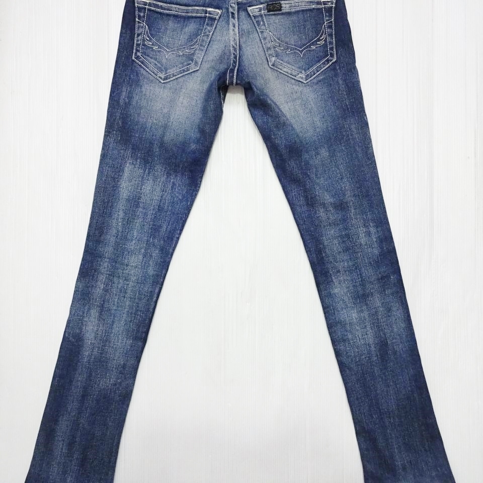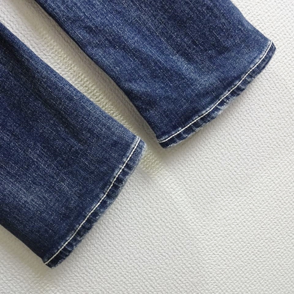 ◆股上が浅いローライズのスキニージーンズです。裾のステッチが前面にくるTYPE2のモデルで、裾が少々フレアしたシューカットスタイルです。