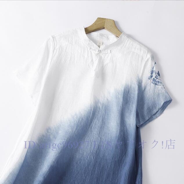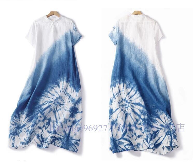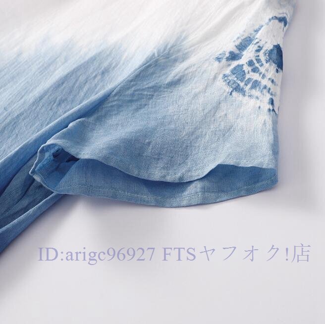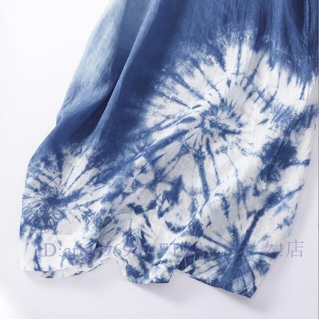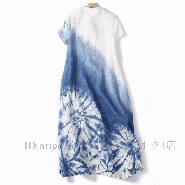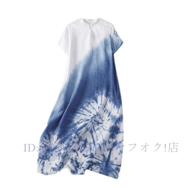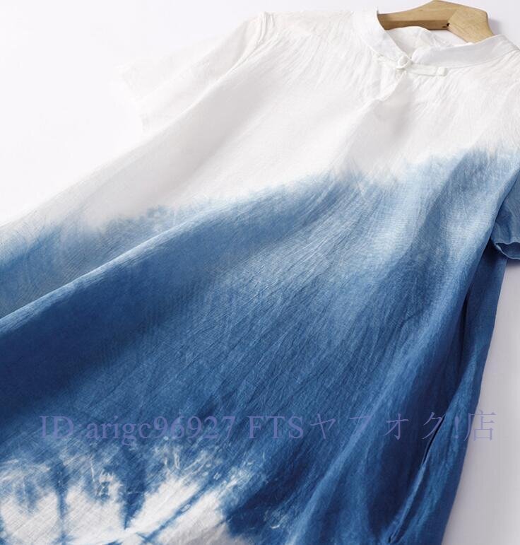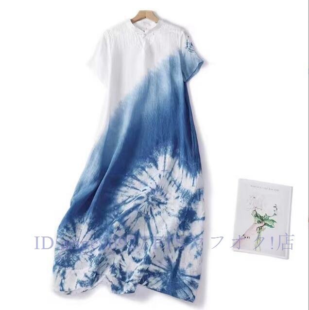 ★新品L チャイナドレス風 墨絵 グラデーション絞り染め柄 夏 ロング ワンピースさわやかな気分に ロング ワンピース
