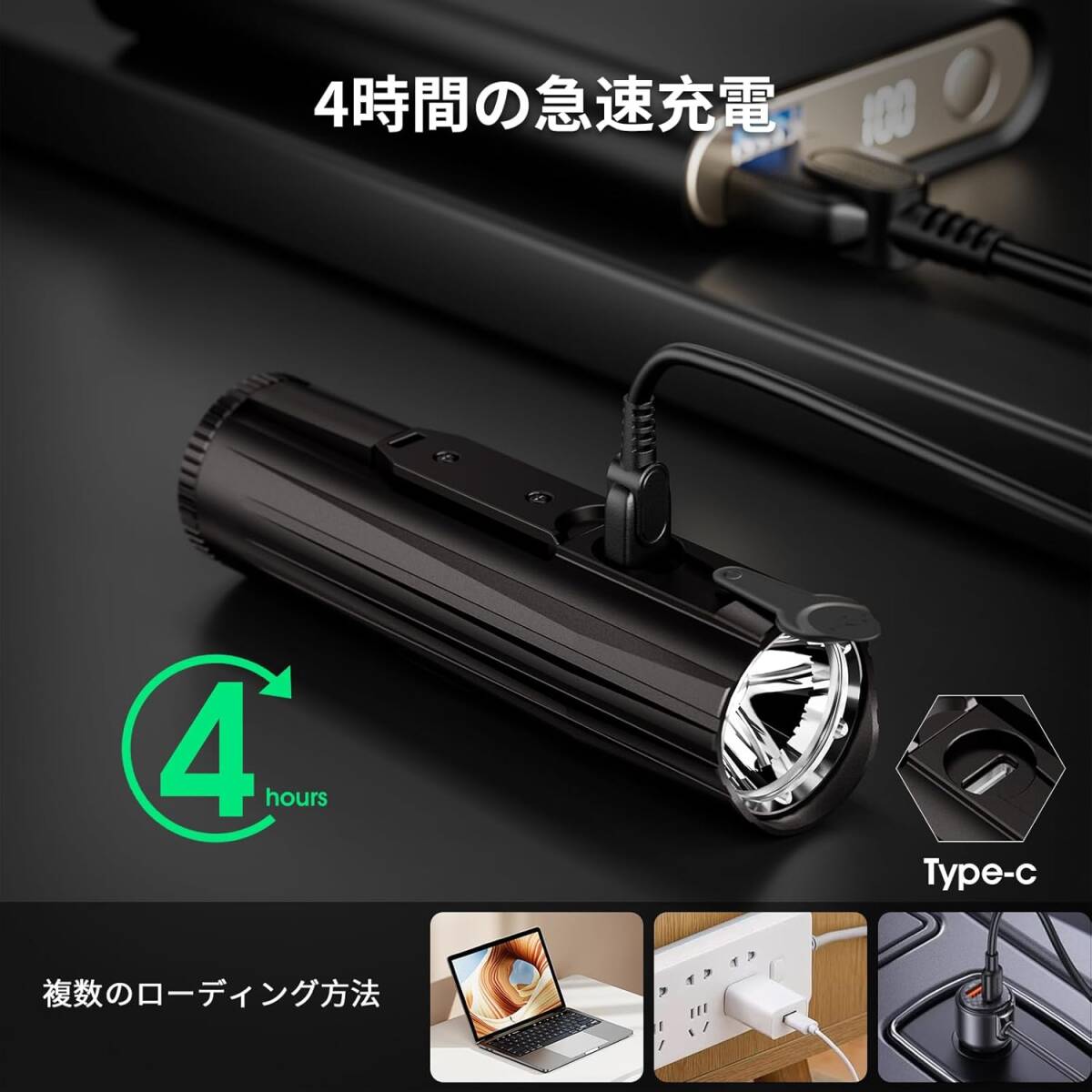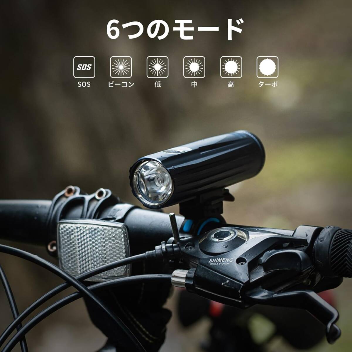 グレー色 WUBEN B2 自転車ライト Type-C USB充電式 高輝度LED自転車ライト 6モード IP68防水 夜間サイクリングや屋外での使用に最適