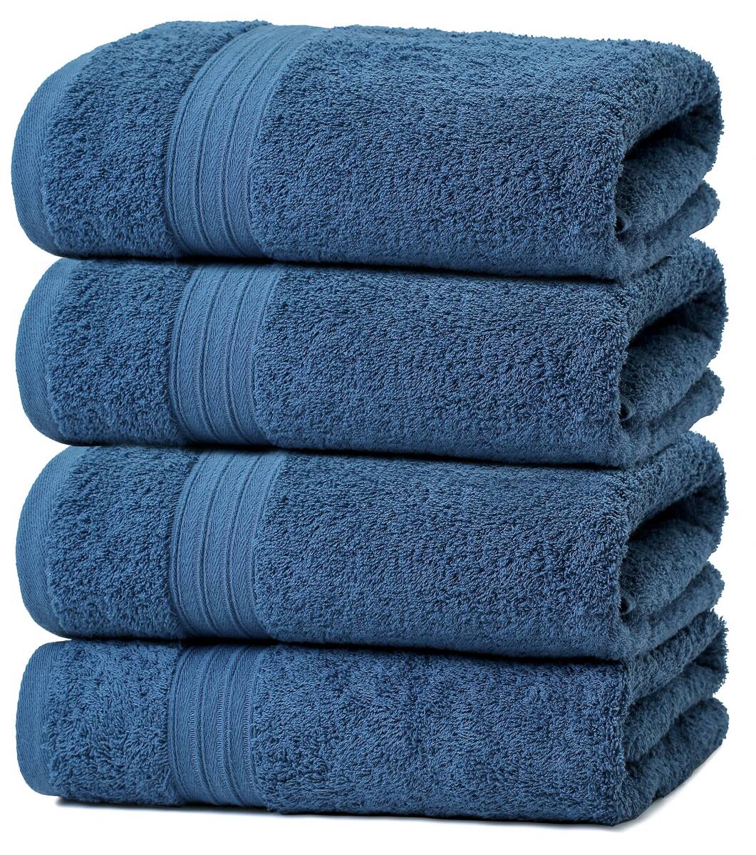 100% 綿 4枚 ホテルスタイル バスタオル セット タオル コットン 人気 ふわふわ の肌触り 吸水 (バスタオル, 青)