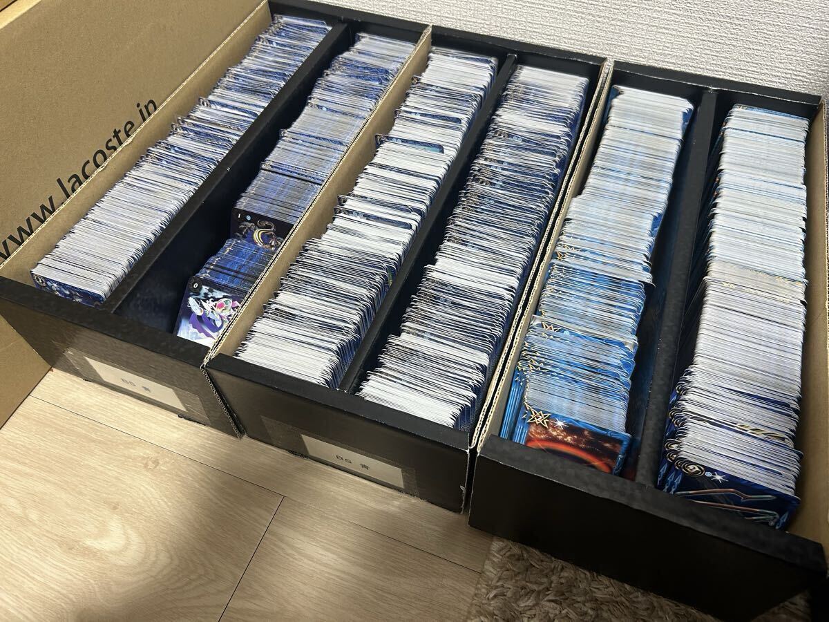 ⑤画像5枚目が青色のみのカードです。カードストレージの大きさが1箱で約1600枚入る大きさのため、総計約4500枚ほどあるかと思います。