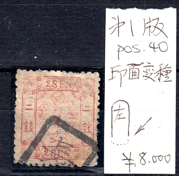 手彫切手 和紙仮名なし2銭赤 印面変種cat.25000円 使用済み