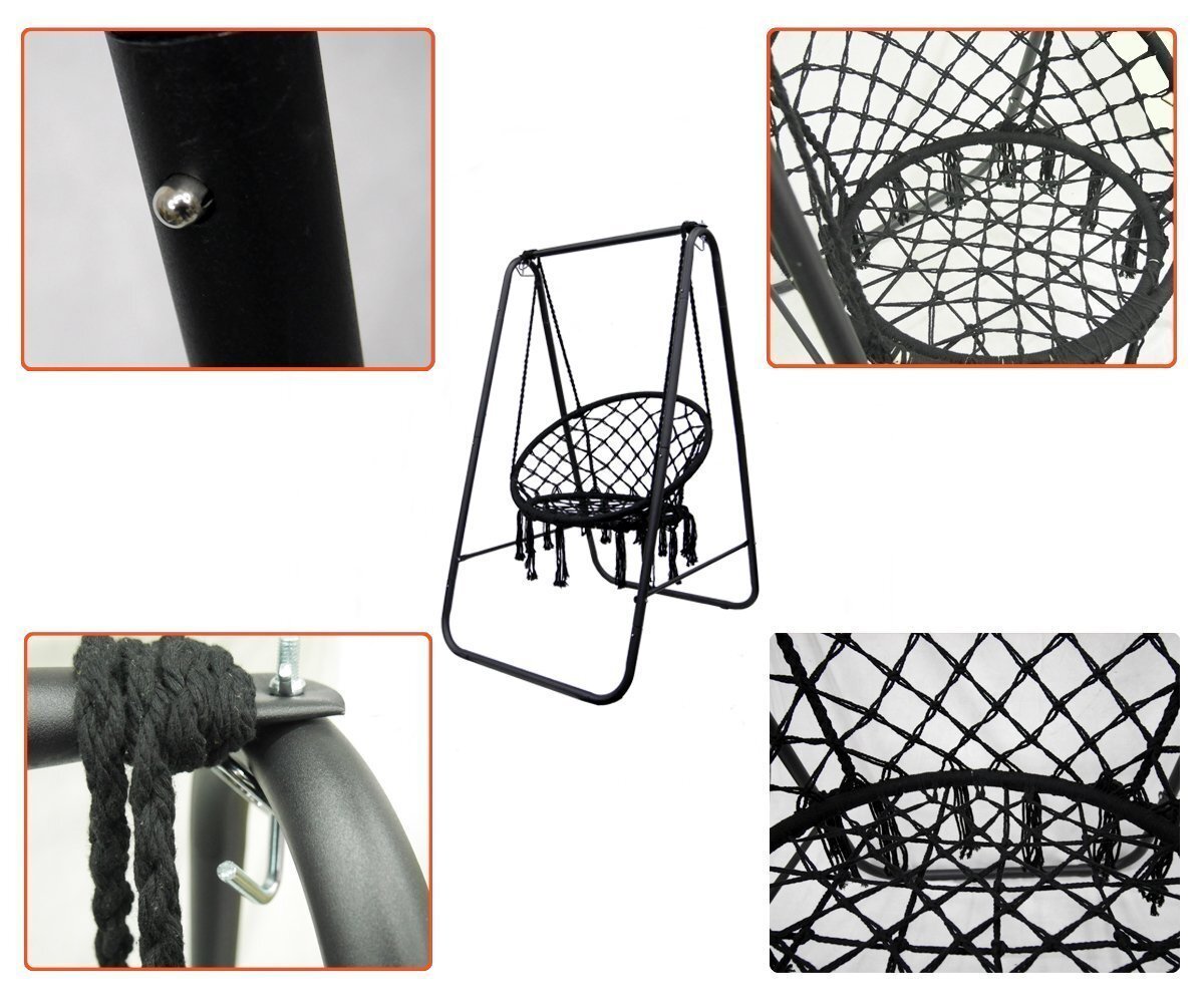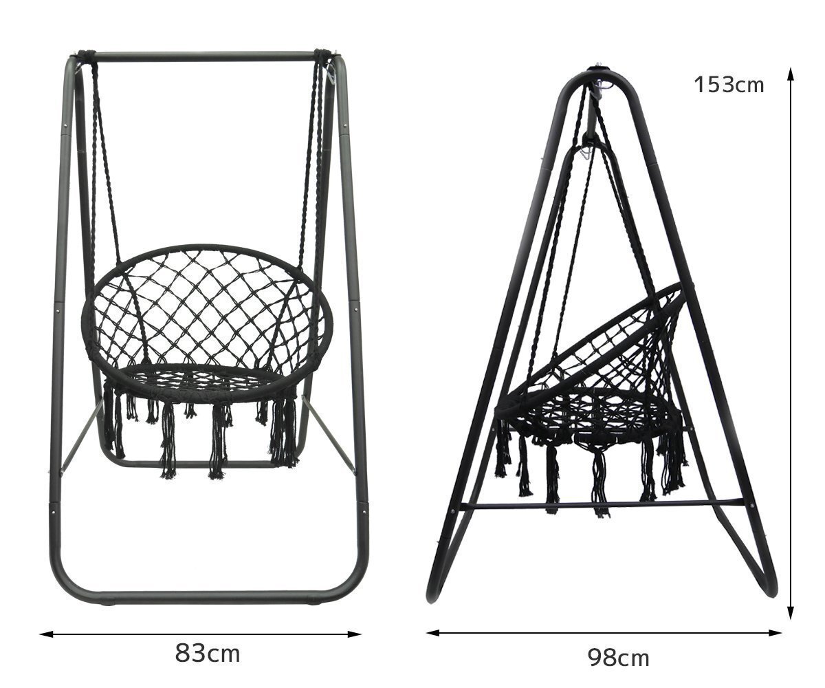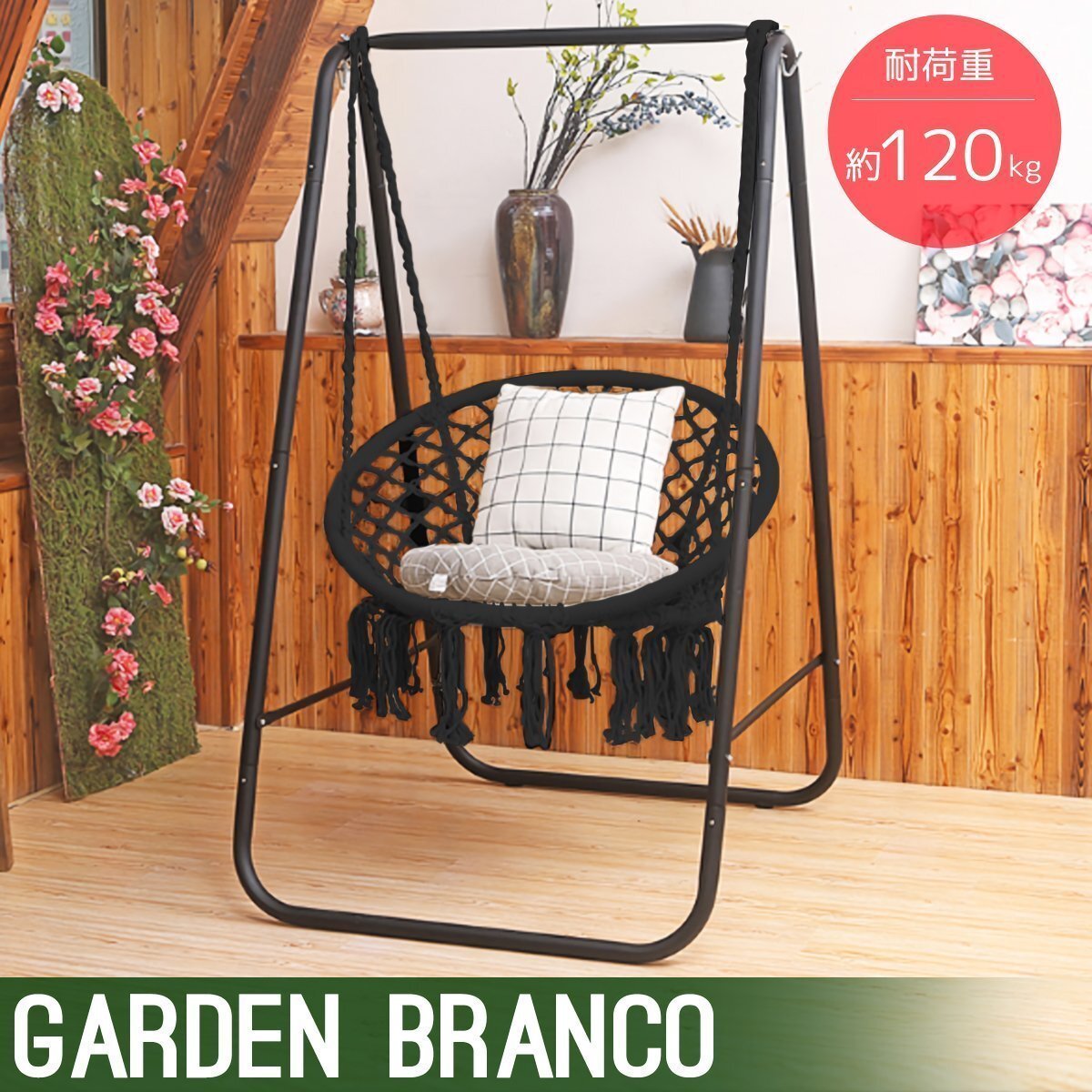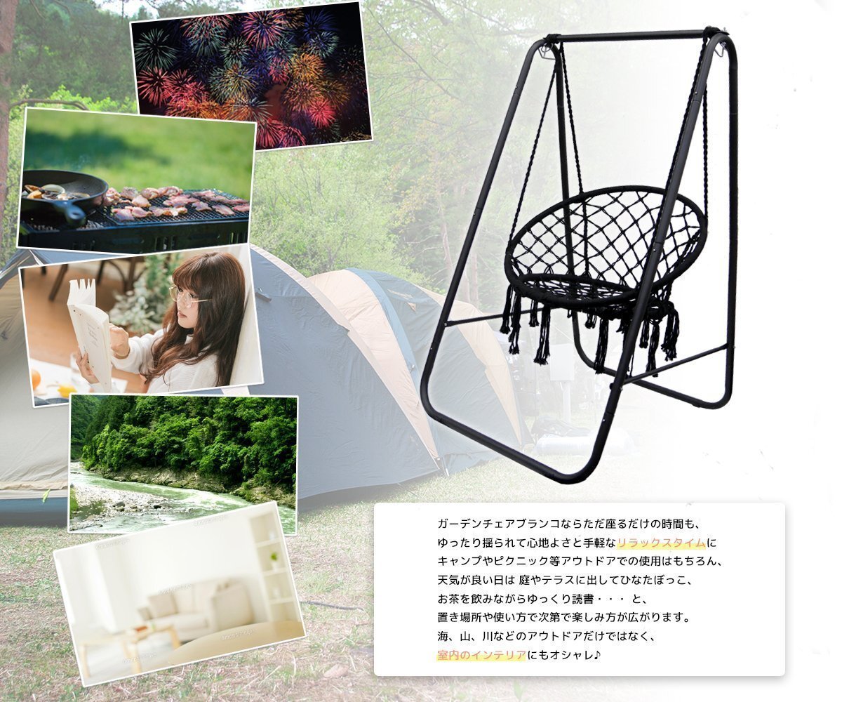 自立式 ハンモックチェア ガーデンブランコ ハンギングチェアスタンド ロープ アウトドア インテリア 室内 ベランダ おしゃれ HC-04BK