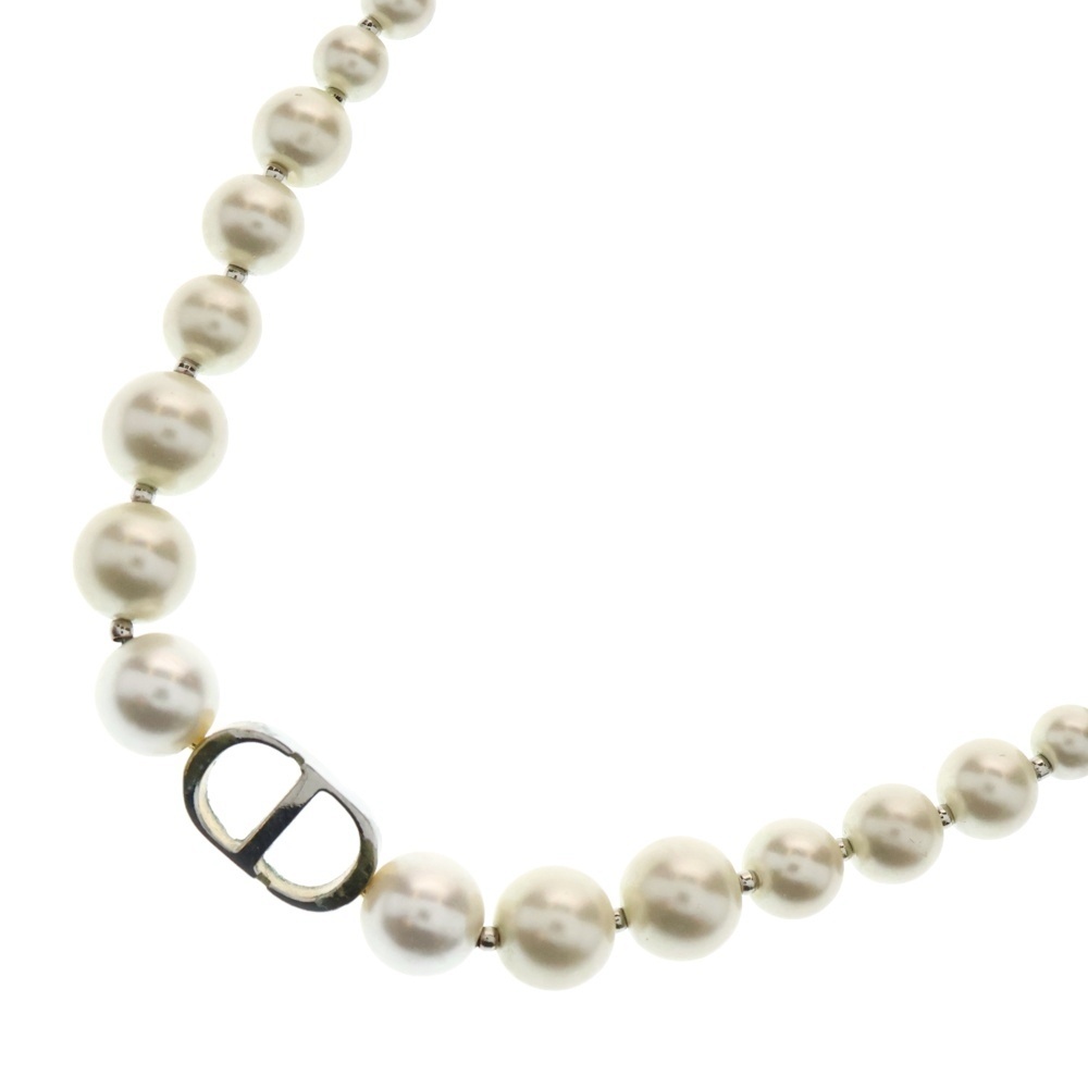 品名30モンテーニュ CDロゴプレート フェイクパール チョーカー ネックレス ゴールド/ホワイト レディース