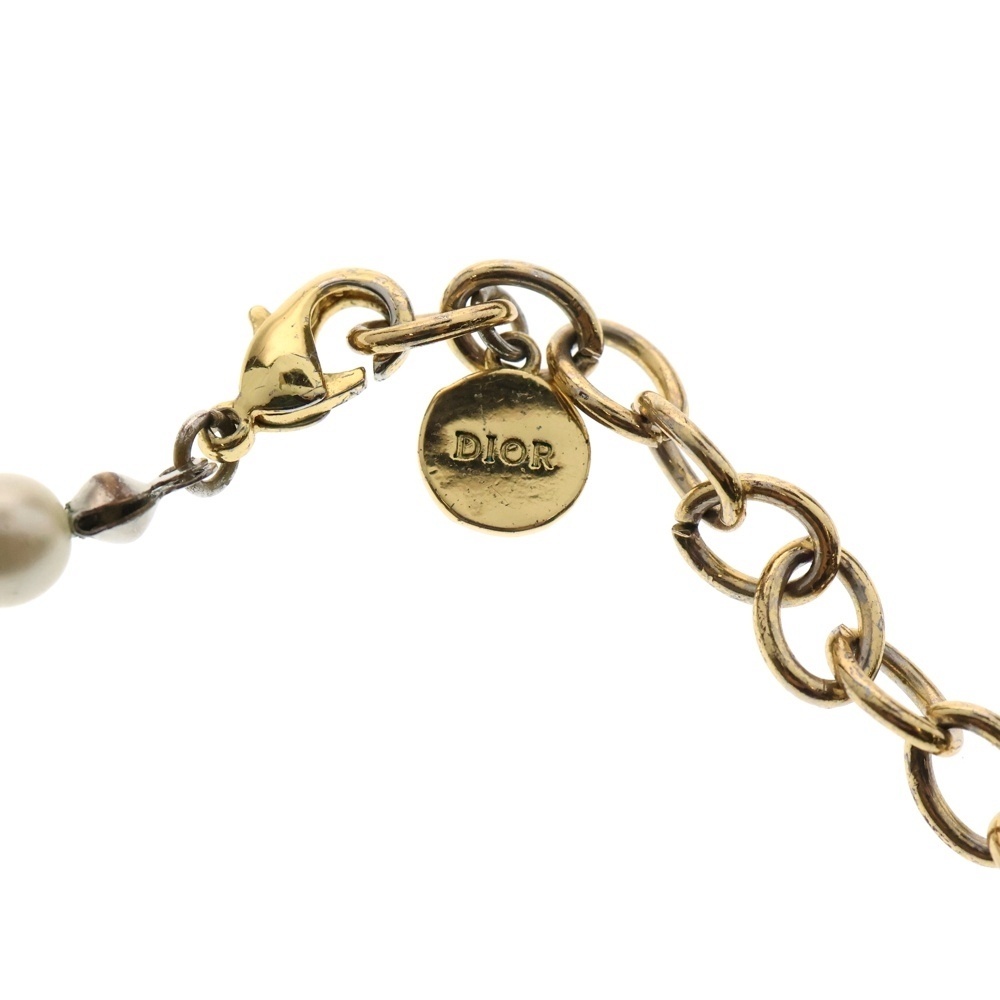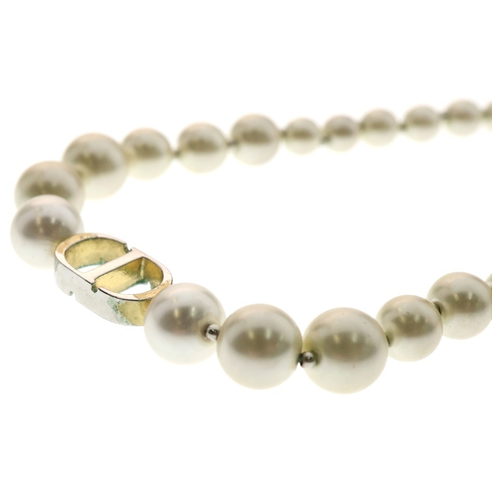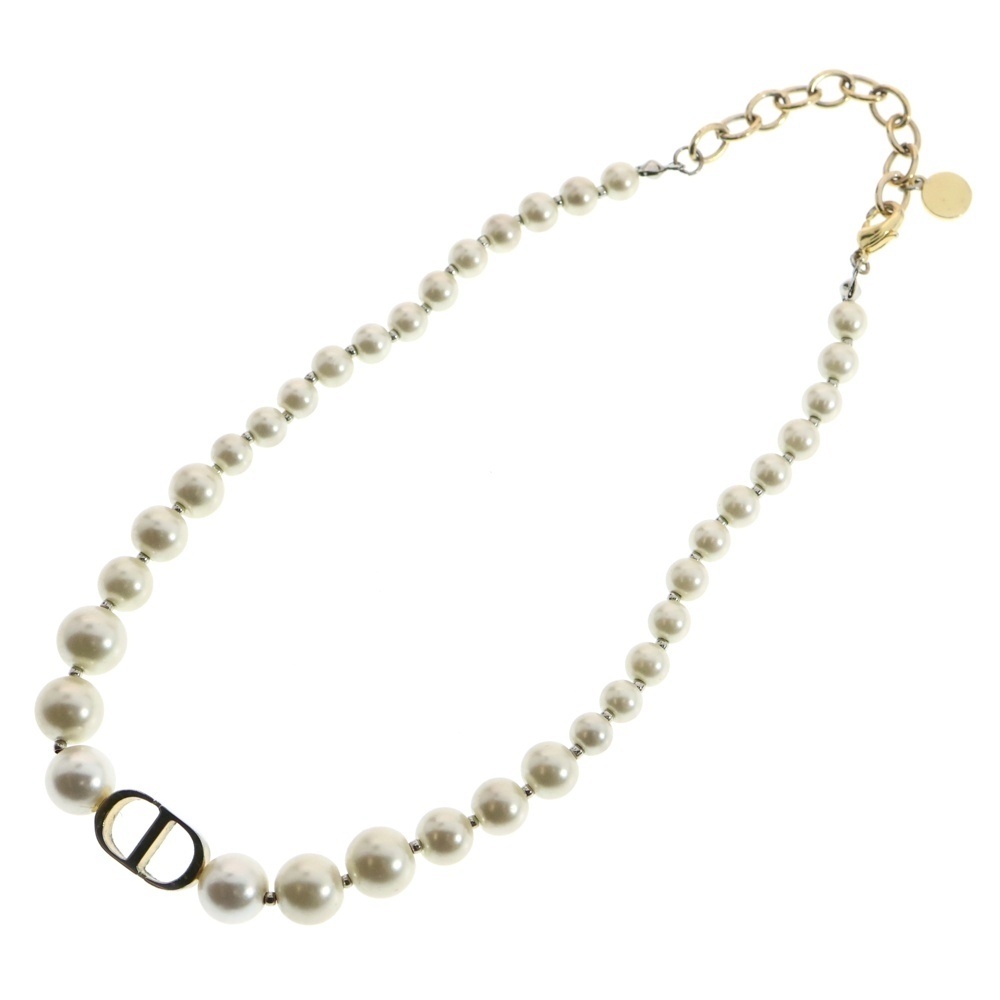 クリスチャンディオール 30モンテーニュ CDロゴプレート フェイクパール チョーカー ネックレス ゴールド/ホワイト レディース