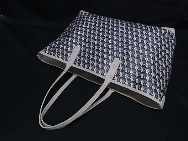 1円 ■美品■ ANYA HINDMARCH アニヤハインドマーチ PVC×レザー トートバッグ ショルダー 肩掛け アイボリー系×ブラック系 FP5642