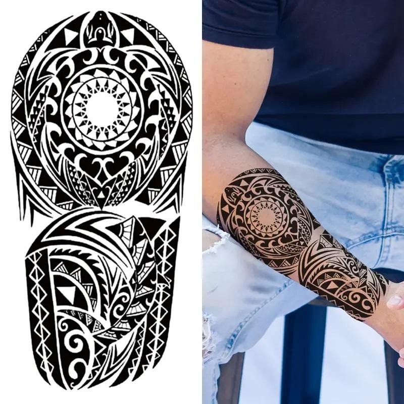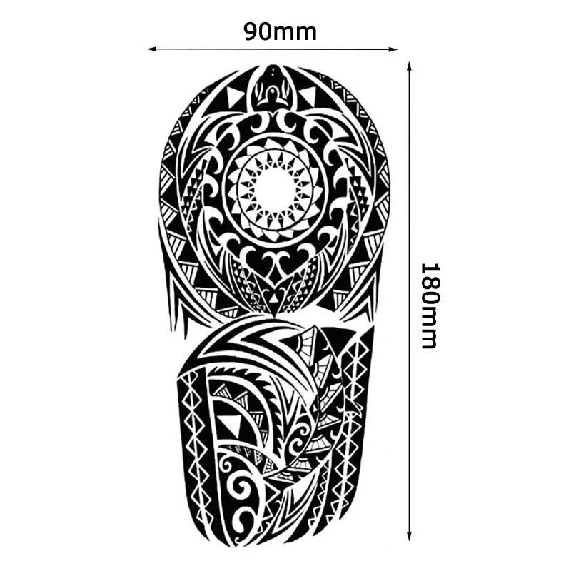 | 台紙サイズ 約 9cm×18cm 肘から手首ほどのサイズのタトゥーシールです。 ※敏感肌、目の近く、または接着剤にアレルギーがある場合は使用しないでください。 【使用方法】 ●透明フィルムを剥がし、スプレーまたは濡れタオルでステッカーをしっかりと濡らして下さい。 ●10秒間、肌に密着させ、ステッカーを剥がします。その後約2時間濡らさないで下さい。 ●約、6時間後に発色開始→約24~48時間程度で完全発色します。 ●約1~2週間持続します。 【貼る時のコツ】 シートそのままの大きさだと曲げ辛く密着しにくい為、余白部分を切ってから貼るのがコツです。 ※商品画像の色味は画面でみた場合と実際は多少の色差が生じる場合がございます。 ※海外製品のため入荷時点でしわや折れ目が付いている場合がございますが、ご使用には問題ございませんので予めご了承ください。