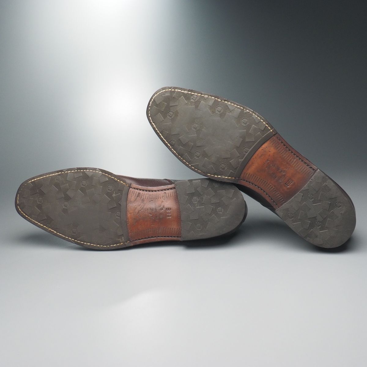 【コンディション詳細】 アッパーのシワ、色ムラや細かな薄い擦れキズ、インソールやライニングの薄い擦れや汚れ、淡いシミなど見られますが、その他気になるようなダメージ等なくこれからも気持ちよくご愛用いただけます。 アウトソールの減りはトゥで3mm程度、ヒールで5mm程度です。 |