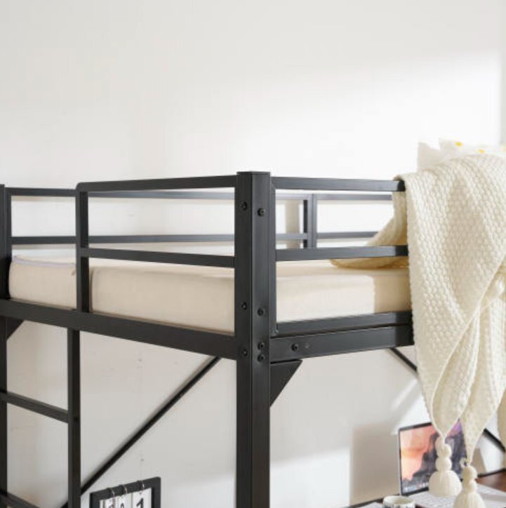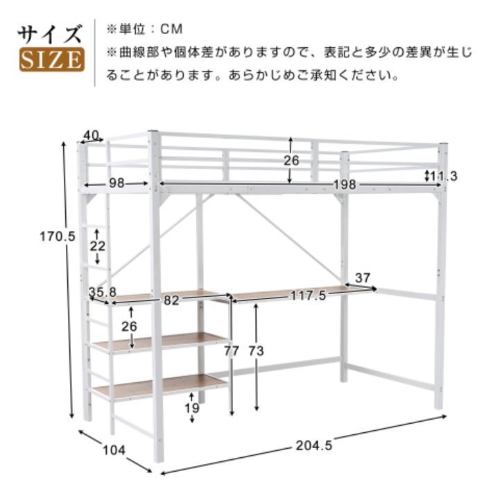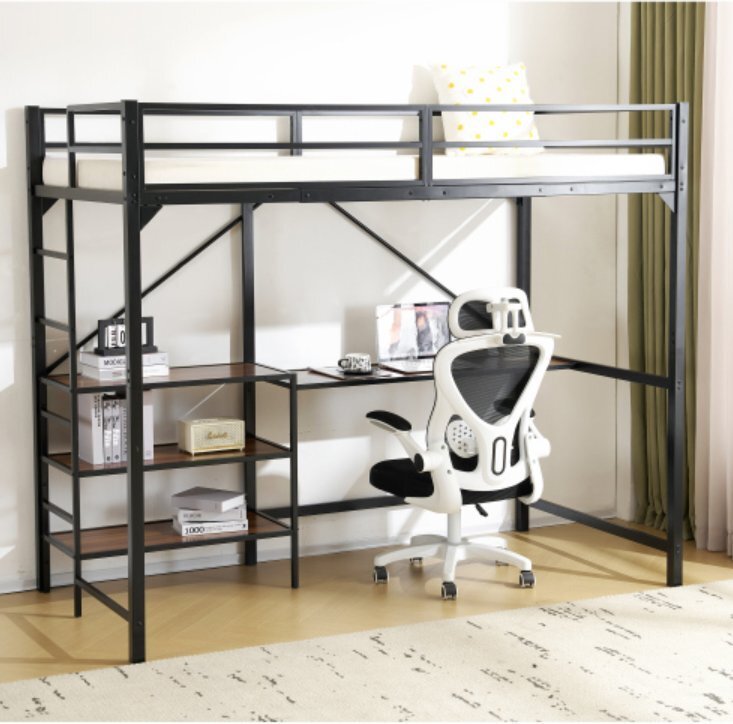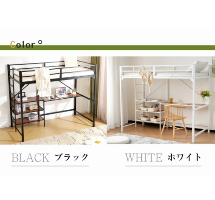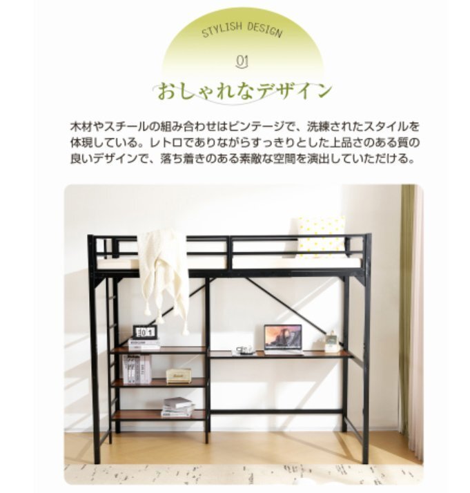 新作 ブラック  ロフトベッド パイプベッド デスク付き ラック棚付き シングルベッド ロータイプ ロータイプ 木 北欧風 おしゃれ 子供部