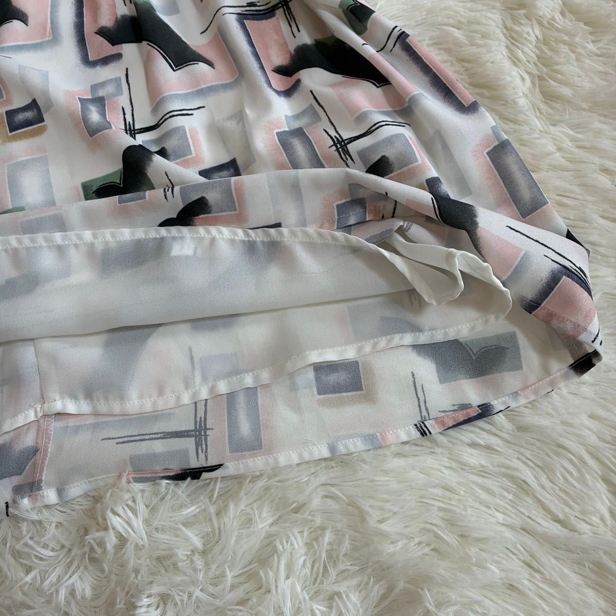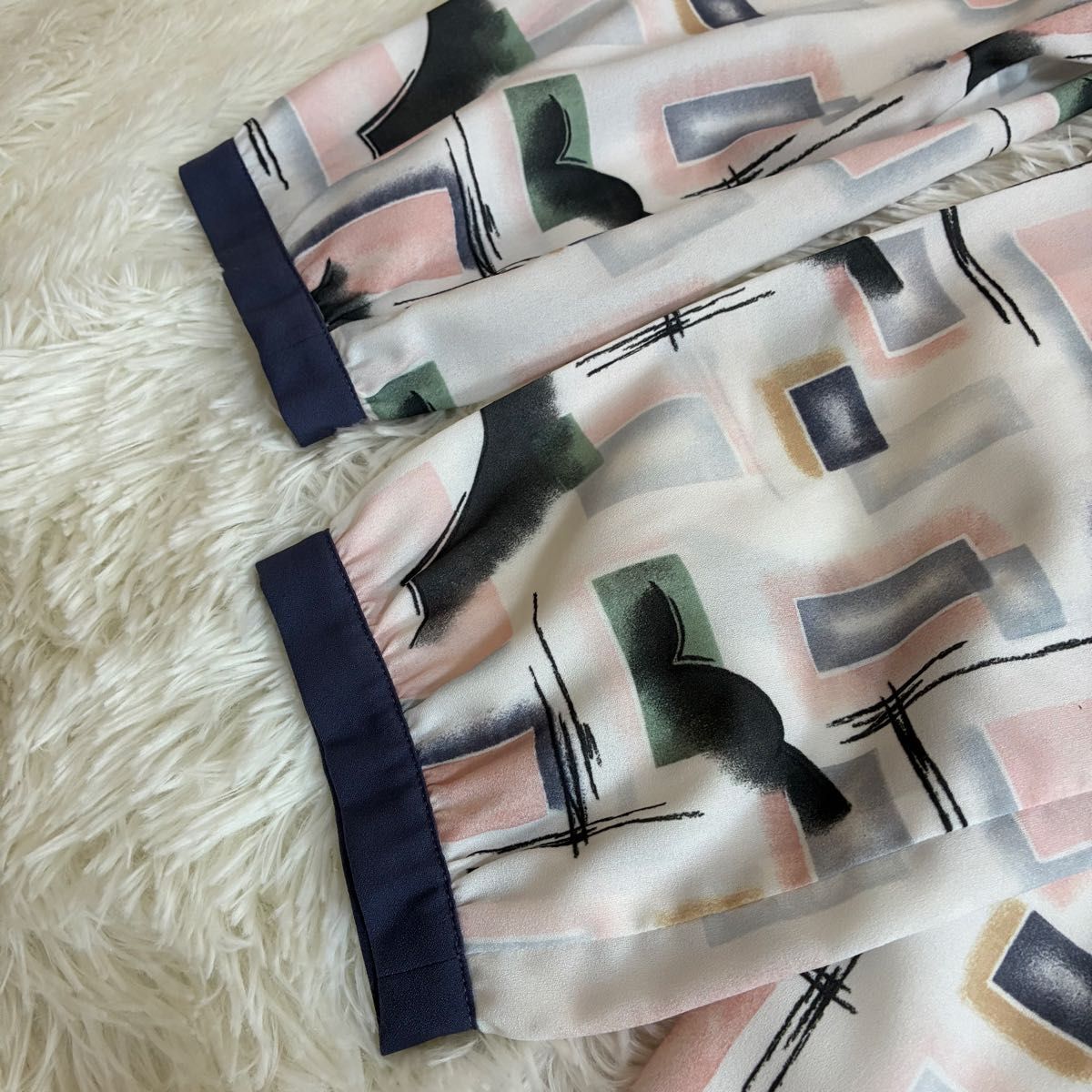 全体に幾何学模様と抽象的な柄がプリントされています。