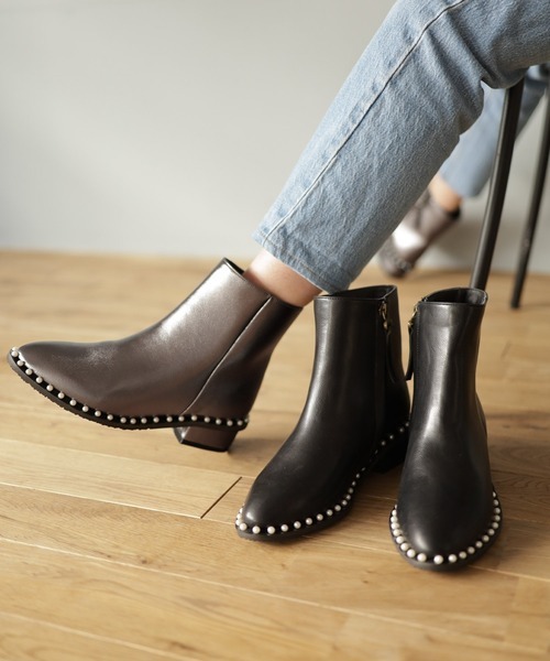 キーワード:ブーツ レディース ショート チャンキーヒール プレーントゥ ローヒール 秋 冬