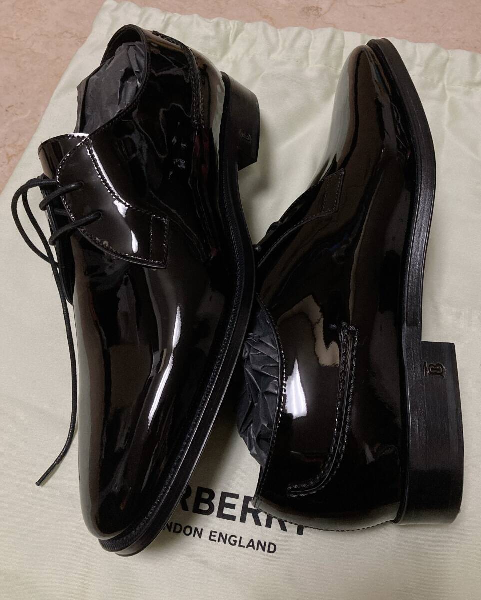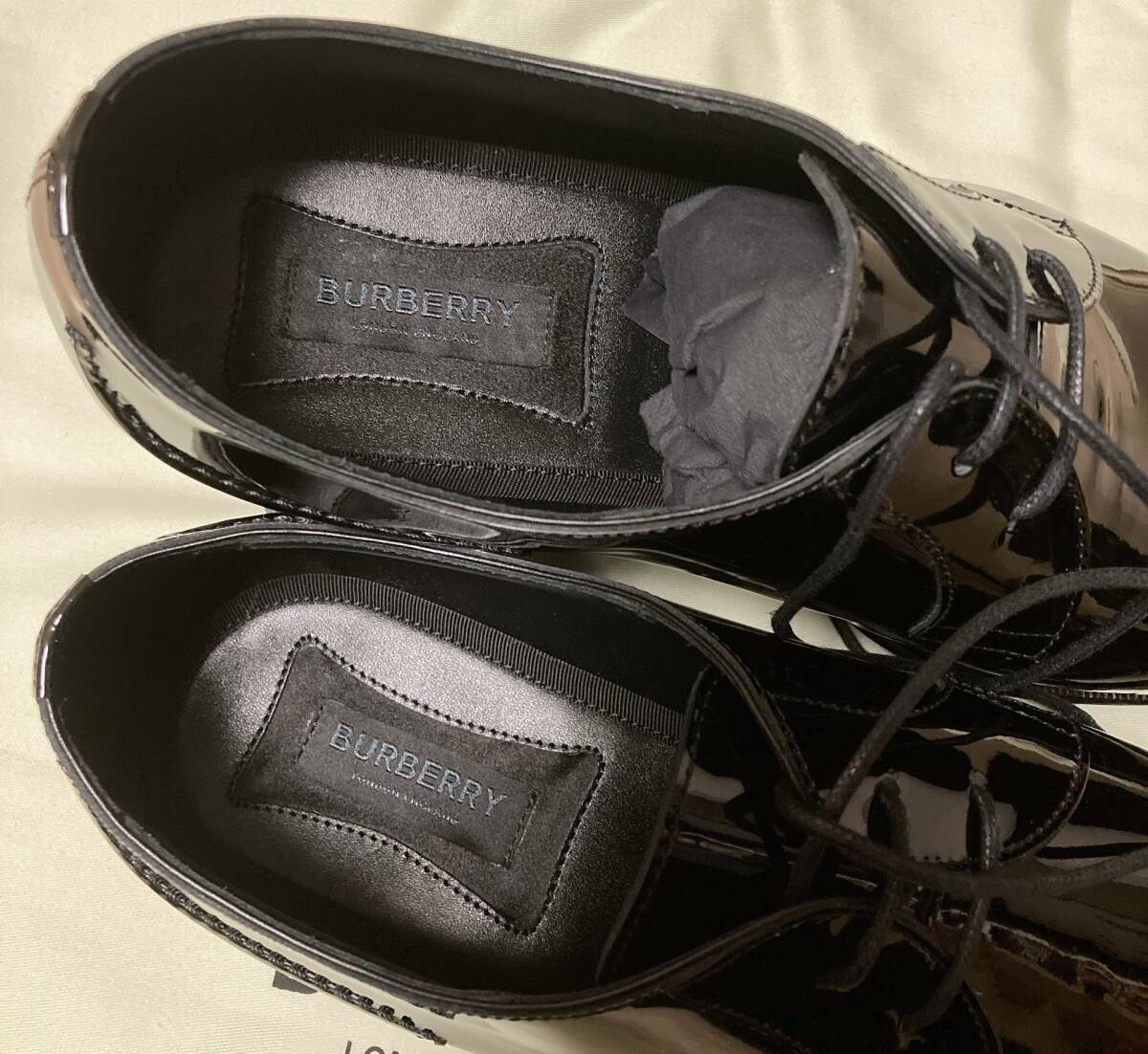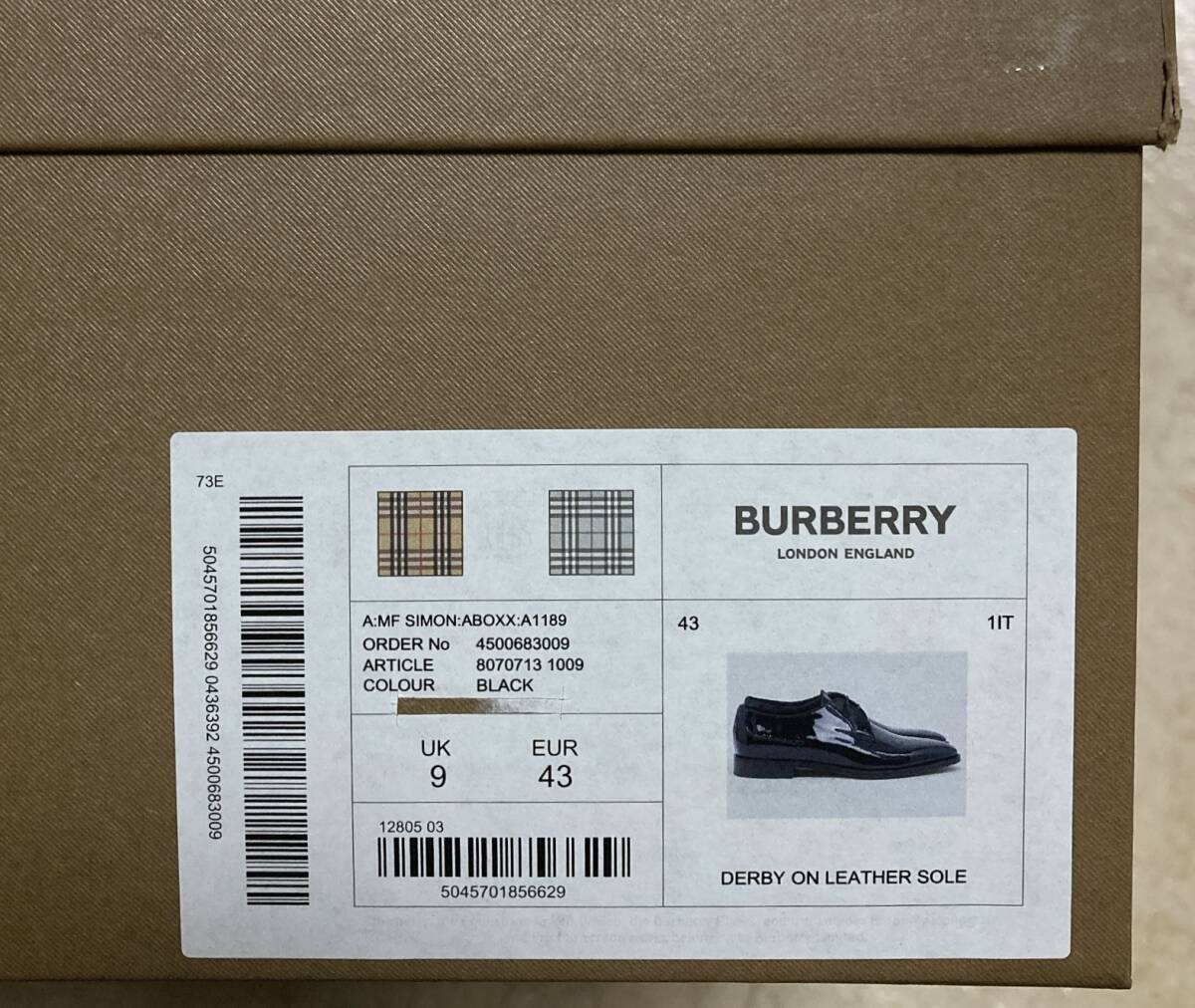 | 新品 BURBERRY バーバリー パテントレザー ダービーシューズ Simon 黒 43 リカルドティッシ エナメル 靴 箱付き |