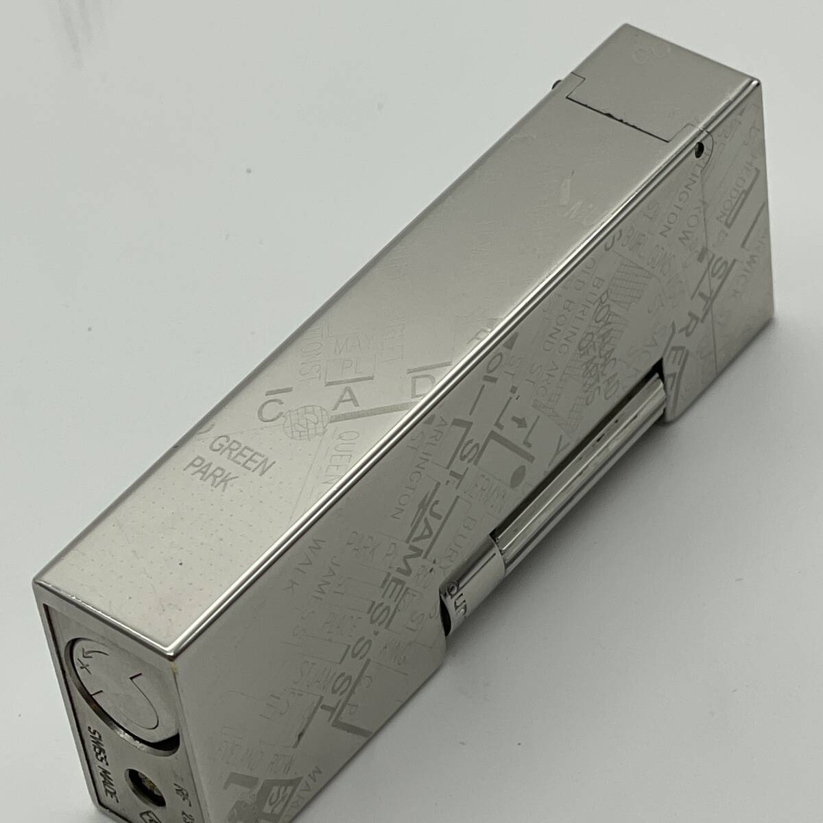 希少品【dunhill ダンヒル JERMYN STREET ジャーミンストリート ローラー ガスライター シルバー 火花確認 箱付き ギャラ付 ロンドンマップ】