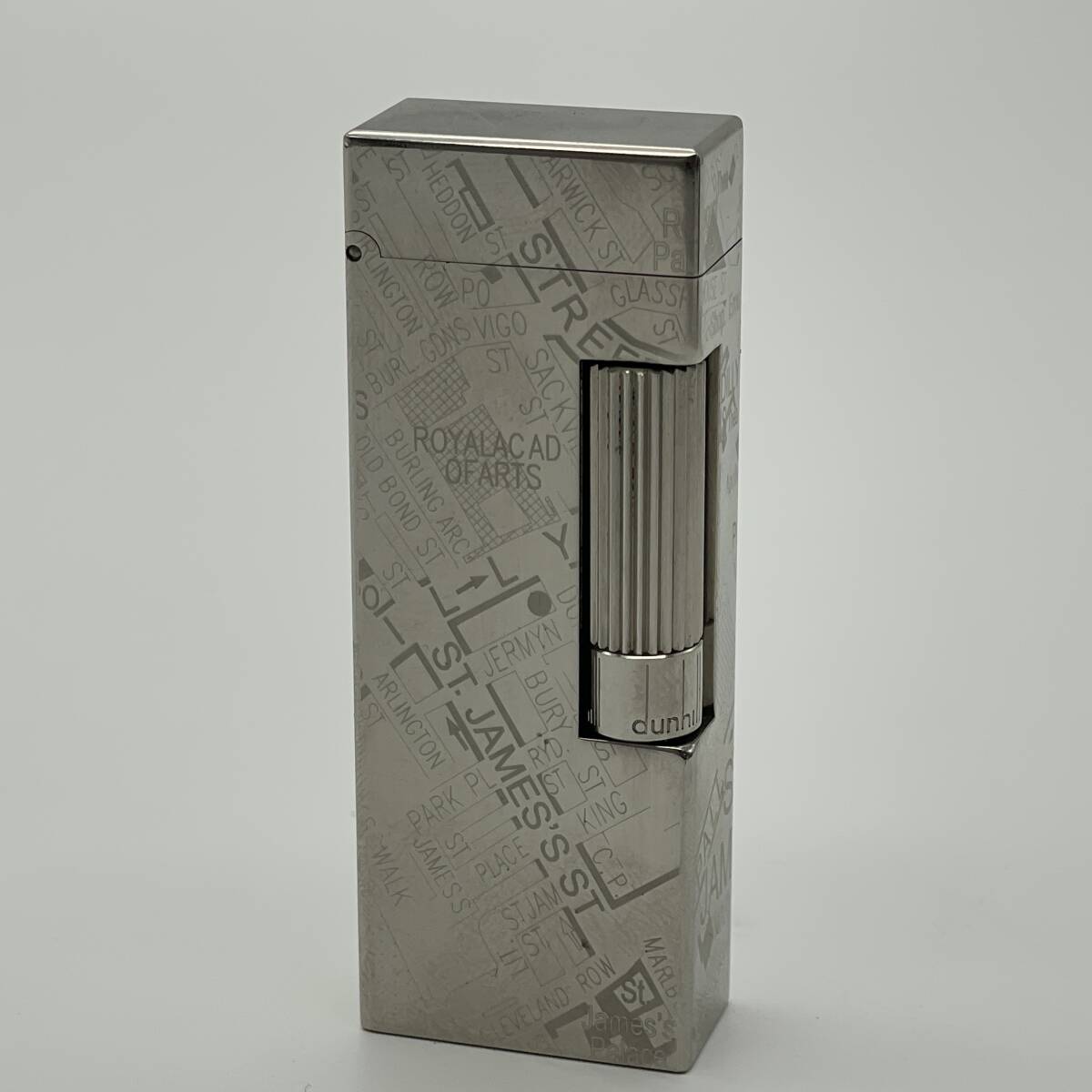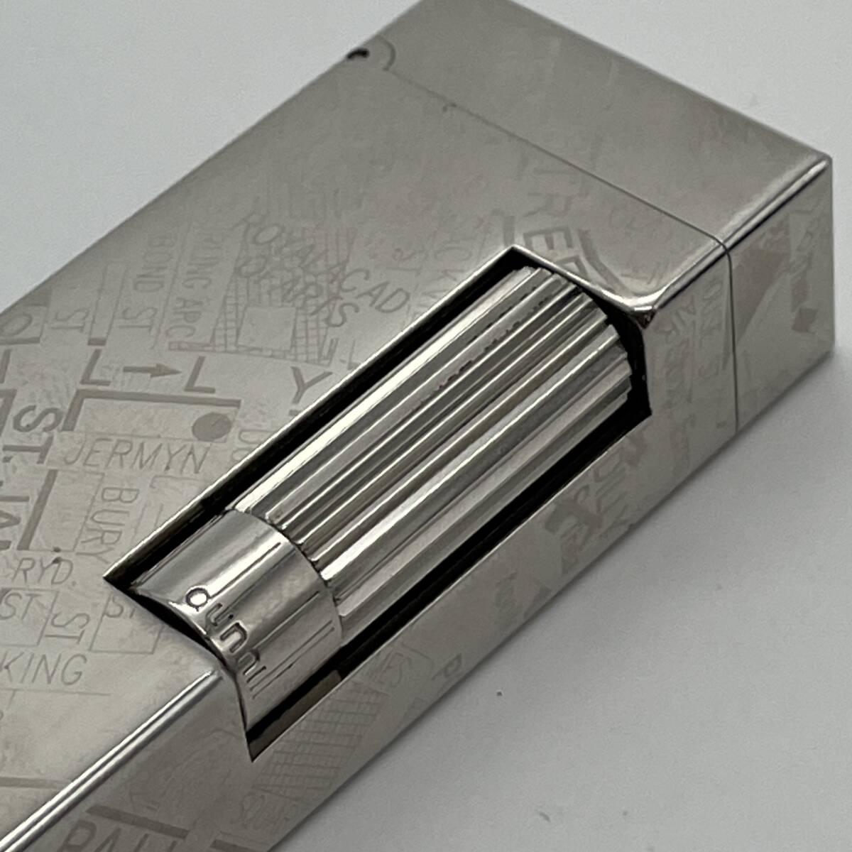 希少品【dunhill ダンヒル JERMYN STREET ジャーミンストリート ローラー ガスライター シルバー 火花確認 箱付 ギャラ付 ロンドンマップ】